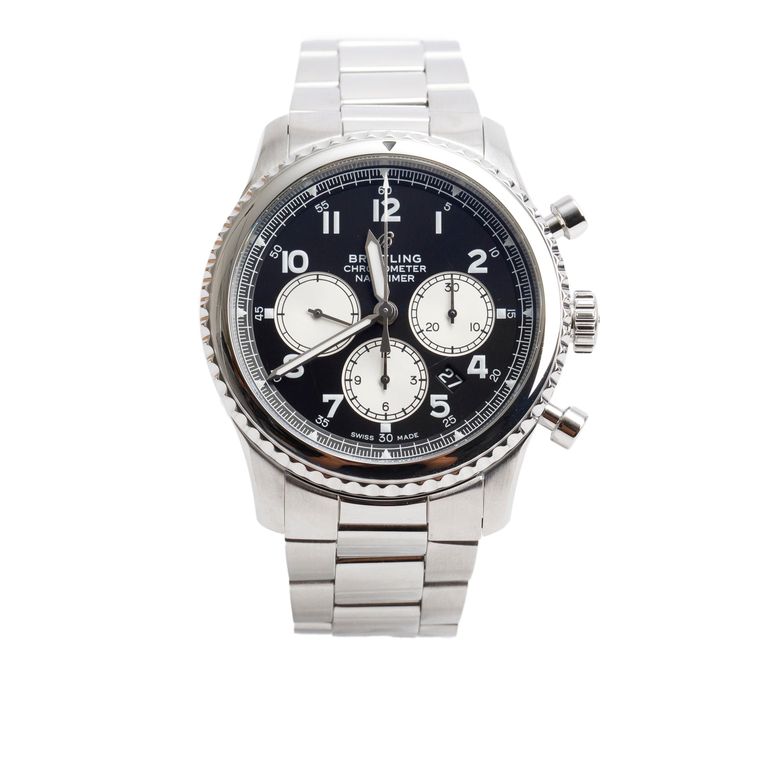 Stainless Steel Navitimer Aviator 8 B01 43 MM Automatic Chronograph Watch Black Dial AB0117 w/ Carry Case &Papers