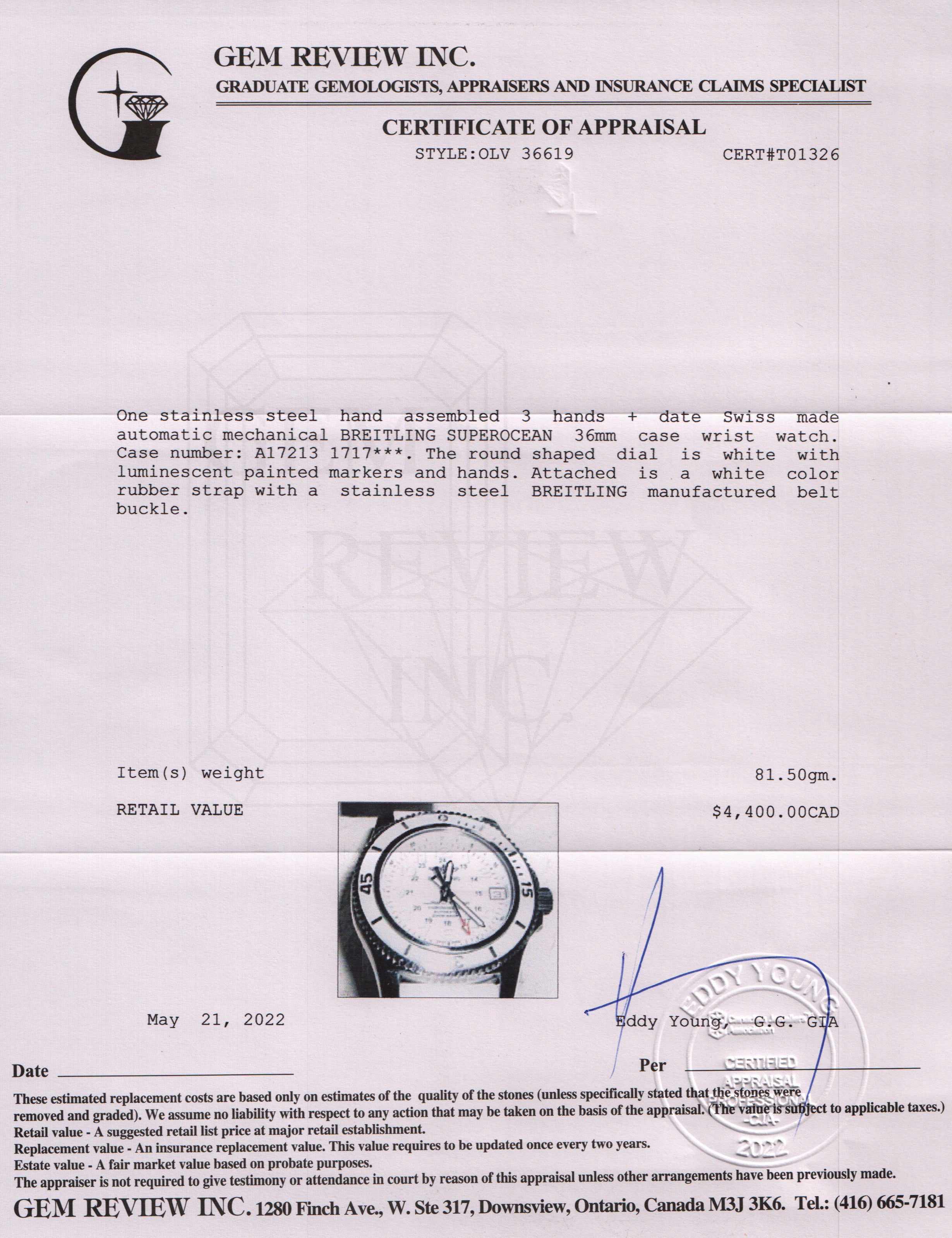 Included Items: Gem Review Appraisal