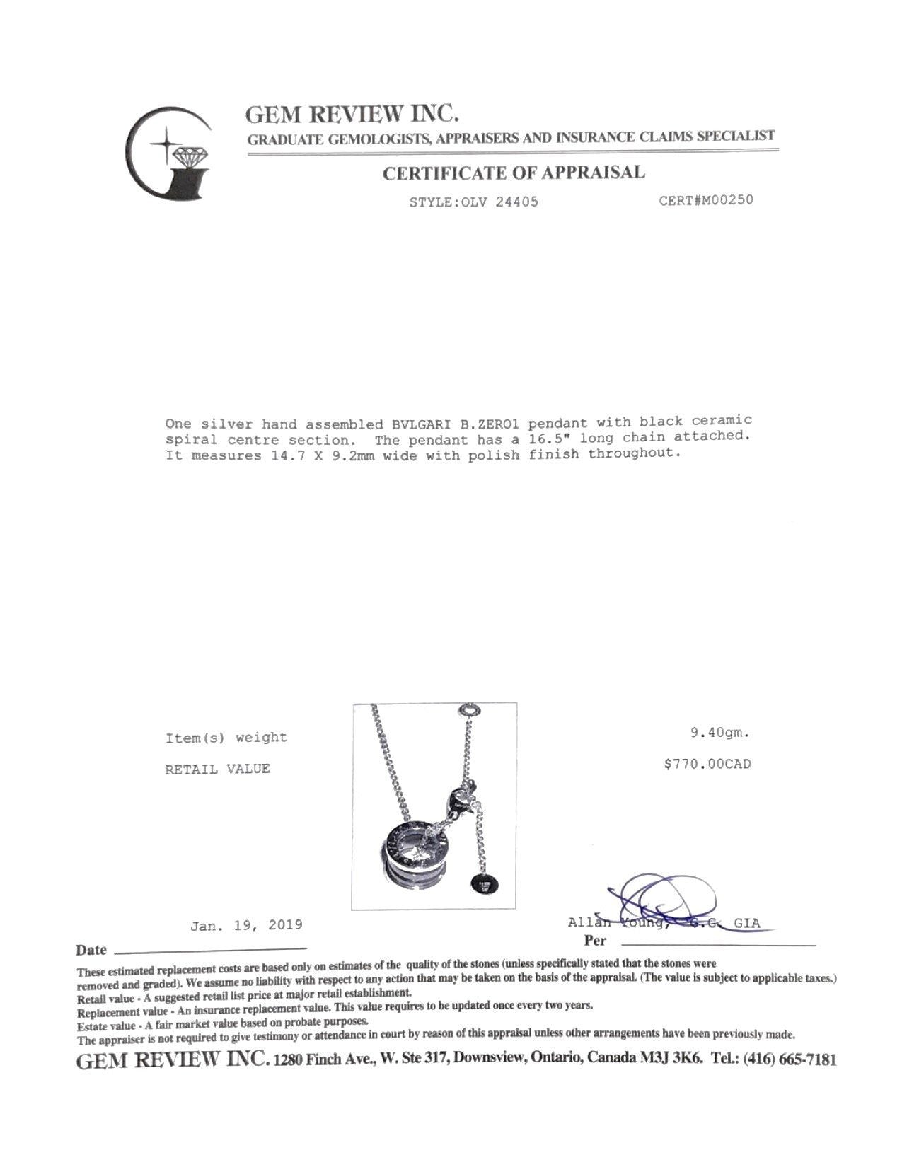Included Items: Original BVLGARI Receipt, Certificate of Authenticity and Gem Review Appraisal