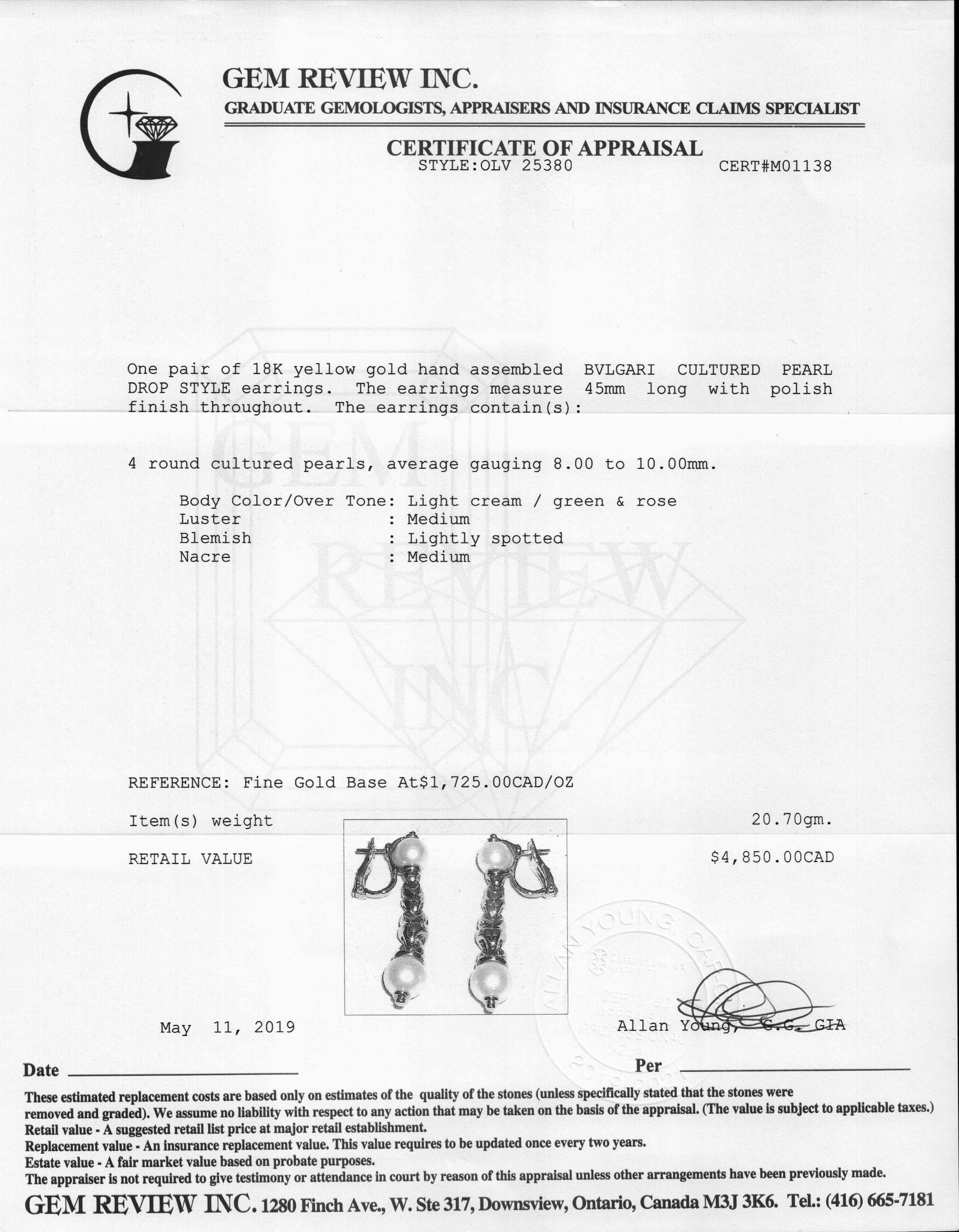 Bulgari Pearl Drop Earrings