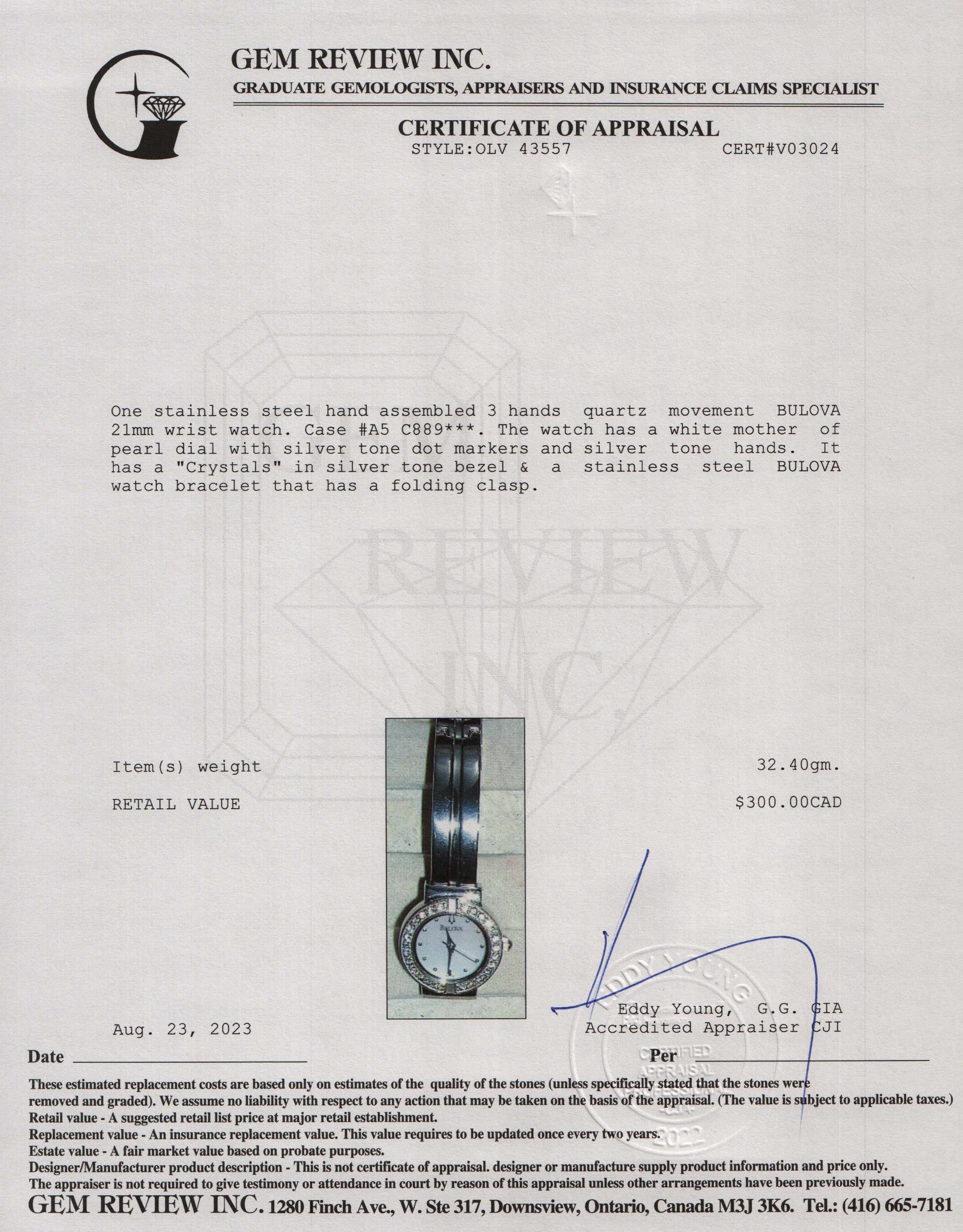 Included Items: Gem Review Appraisal