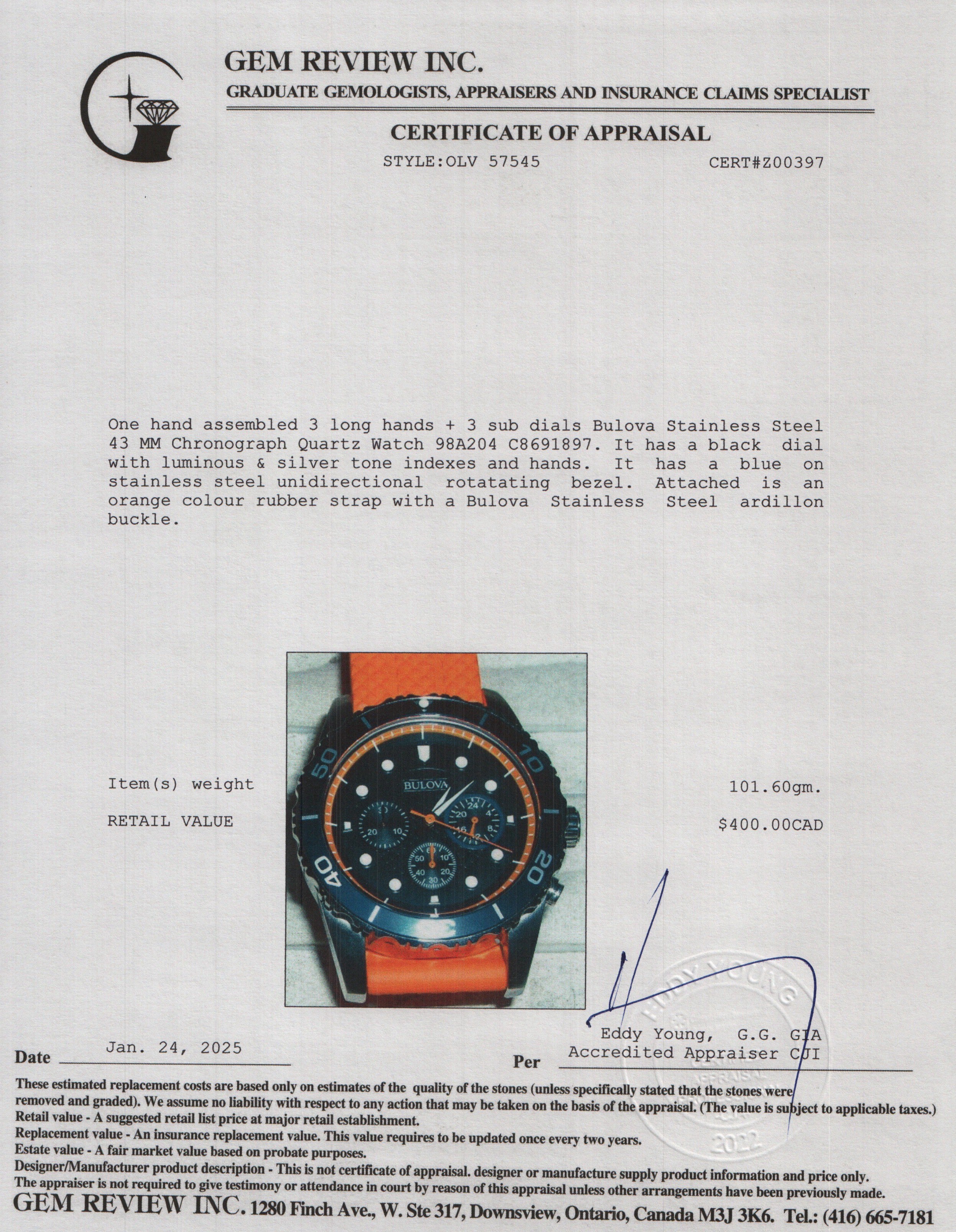 Stainless Steel 43 MM Chronograph Quartz Watch 98A204