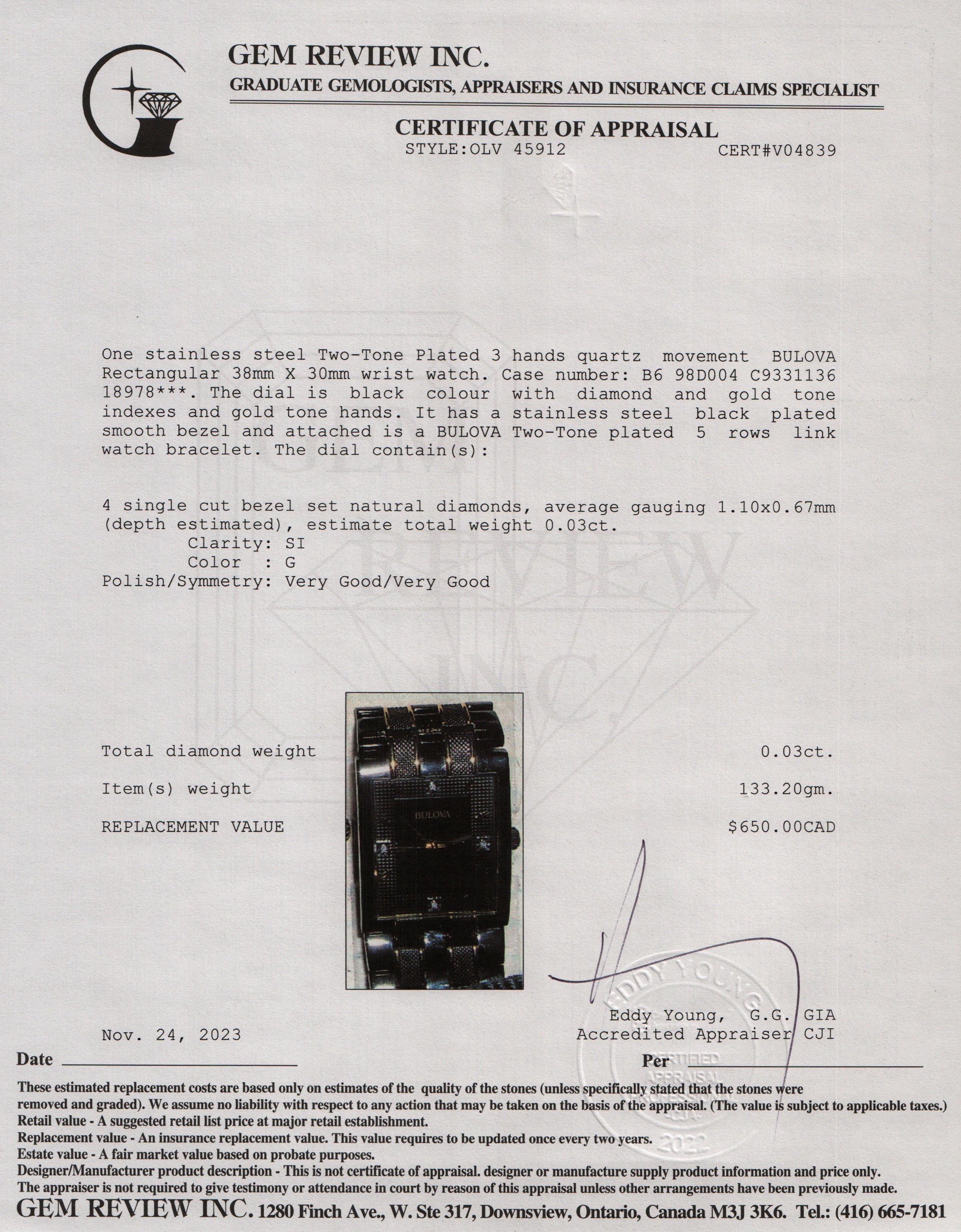 Two-Tone Plated Stainless Steel Diamond Dial 30 MM Rectangular Watch w/ Box