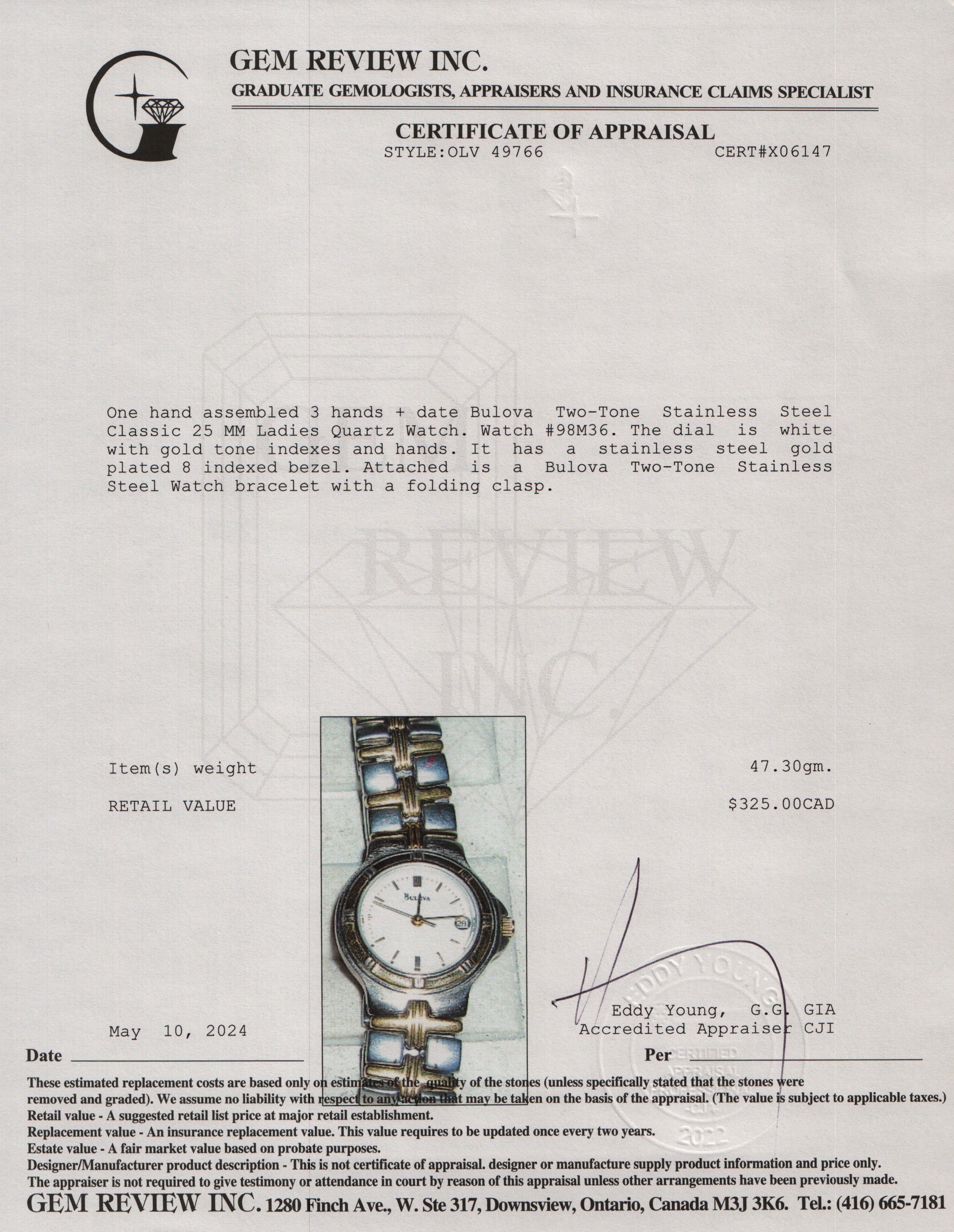Two-Tone Stainless Steel Classic 25 MM Ladies Quartz Watch 98M36