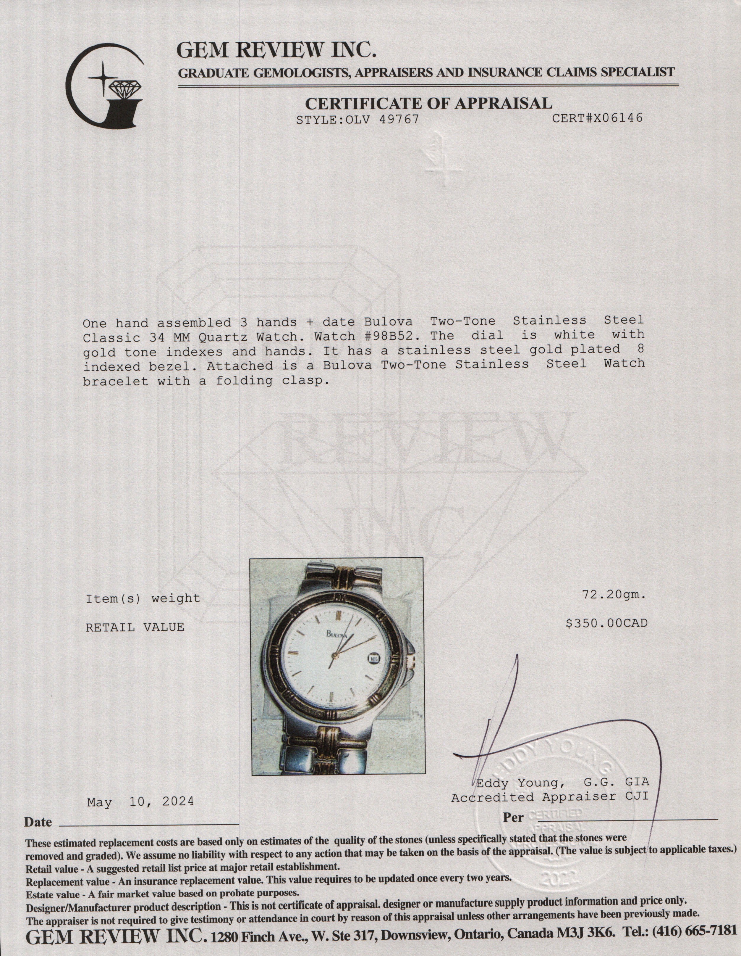 Two-Tone Stainless Steel Classic 34 MM Quartz Watch 98B52