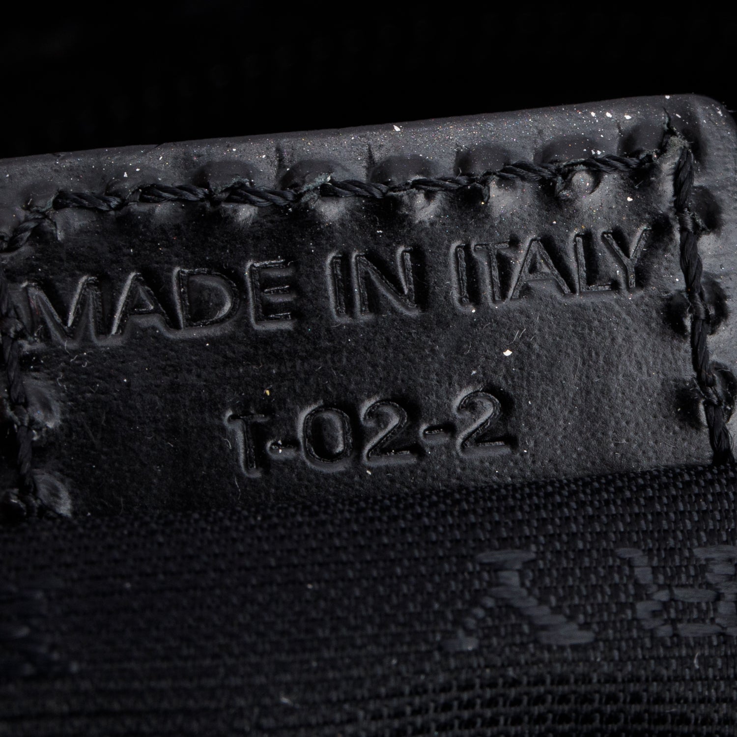Condition: Very Good; slight creasing at exterior leather and strap; slight loss of shape at exterior; clean interior.