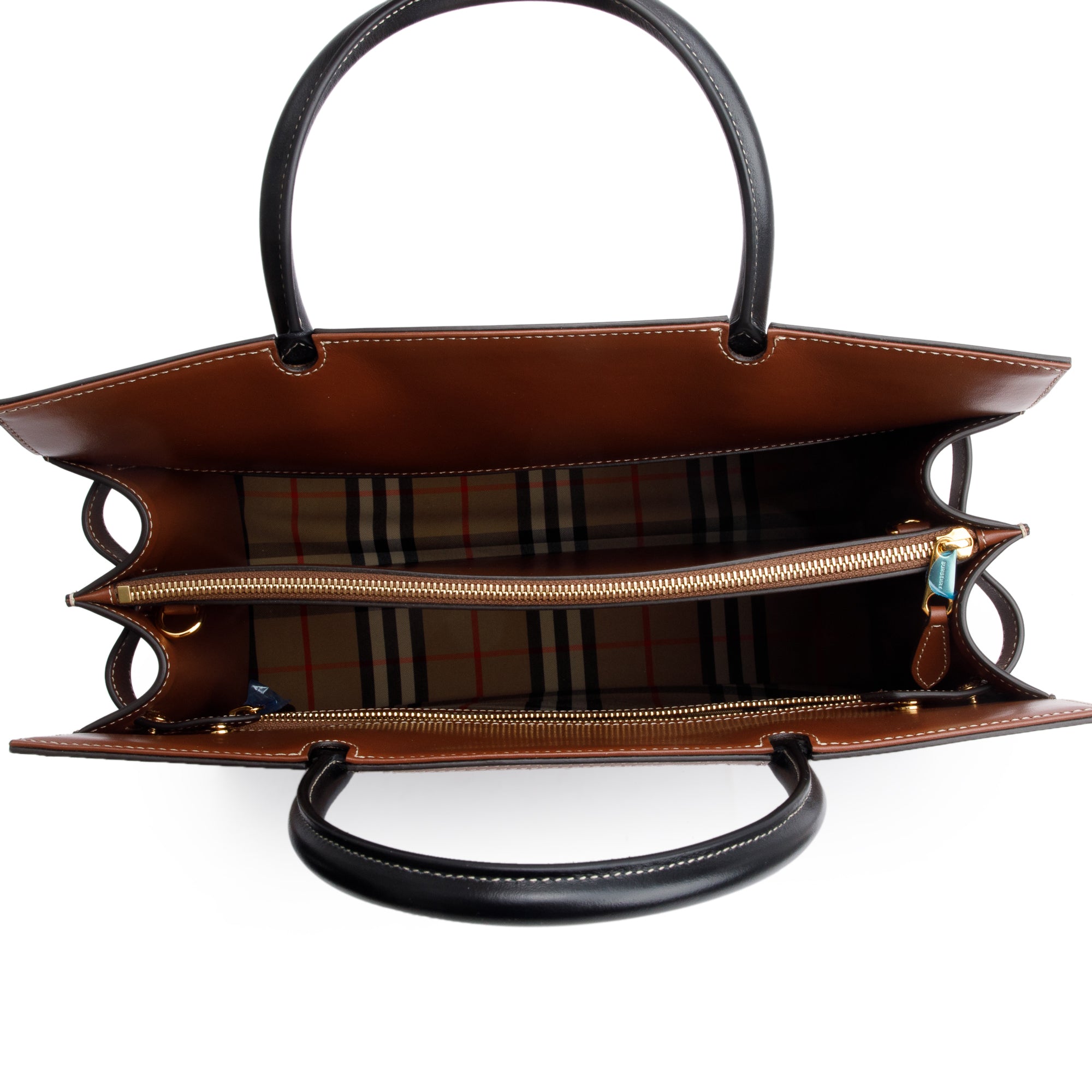 Black/Brown Calfskin Leather Vintage Check Trim Medium Two Handle Title Tote w/ Strap