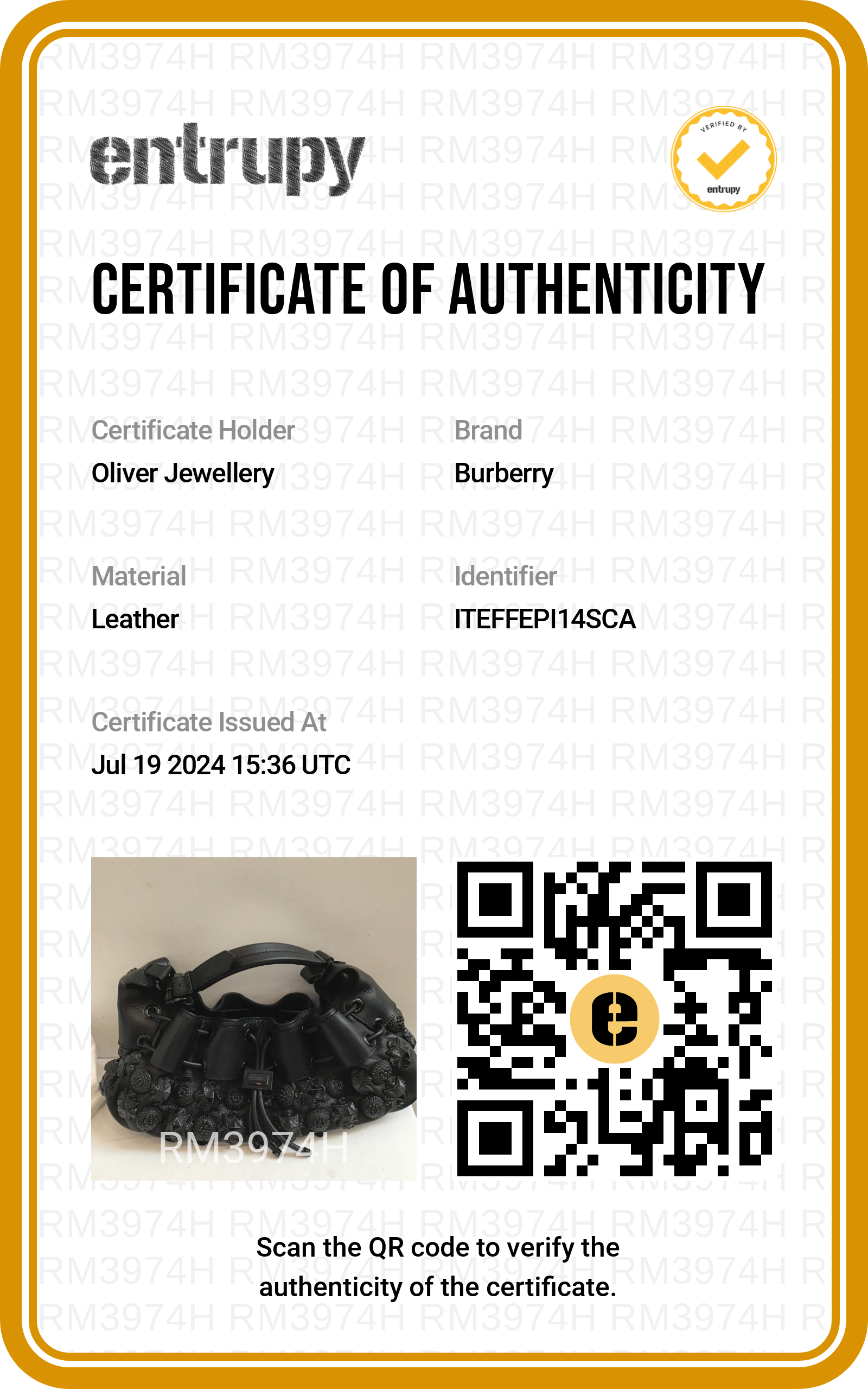 Box, Dust Bag, Entrupy Certificate of Authenticity