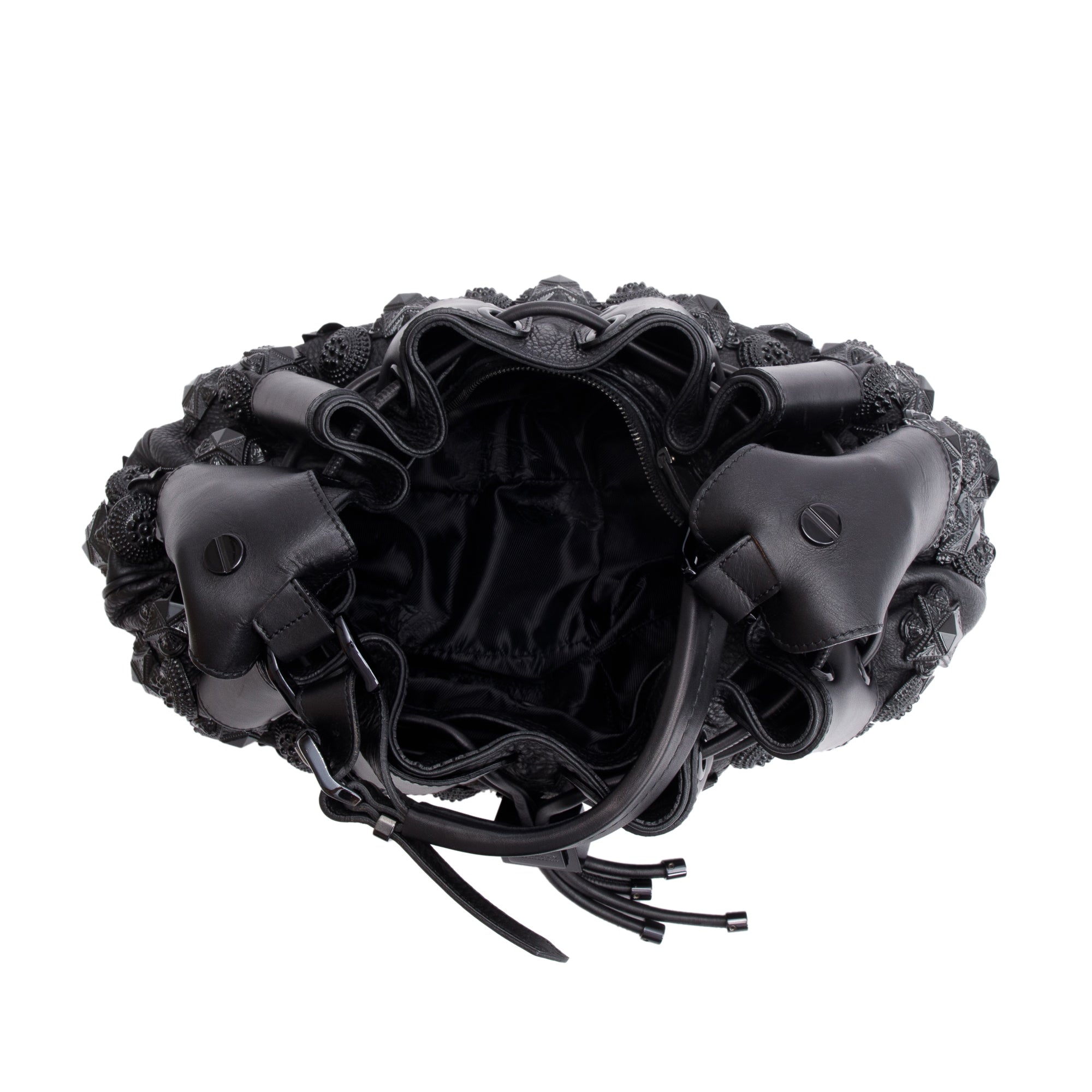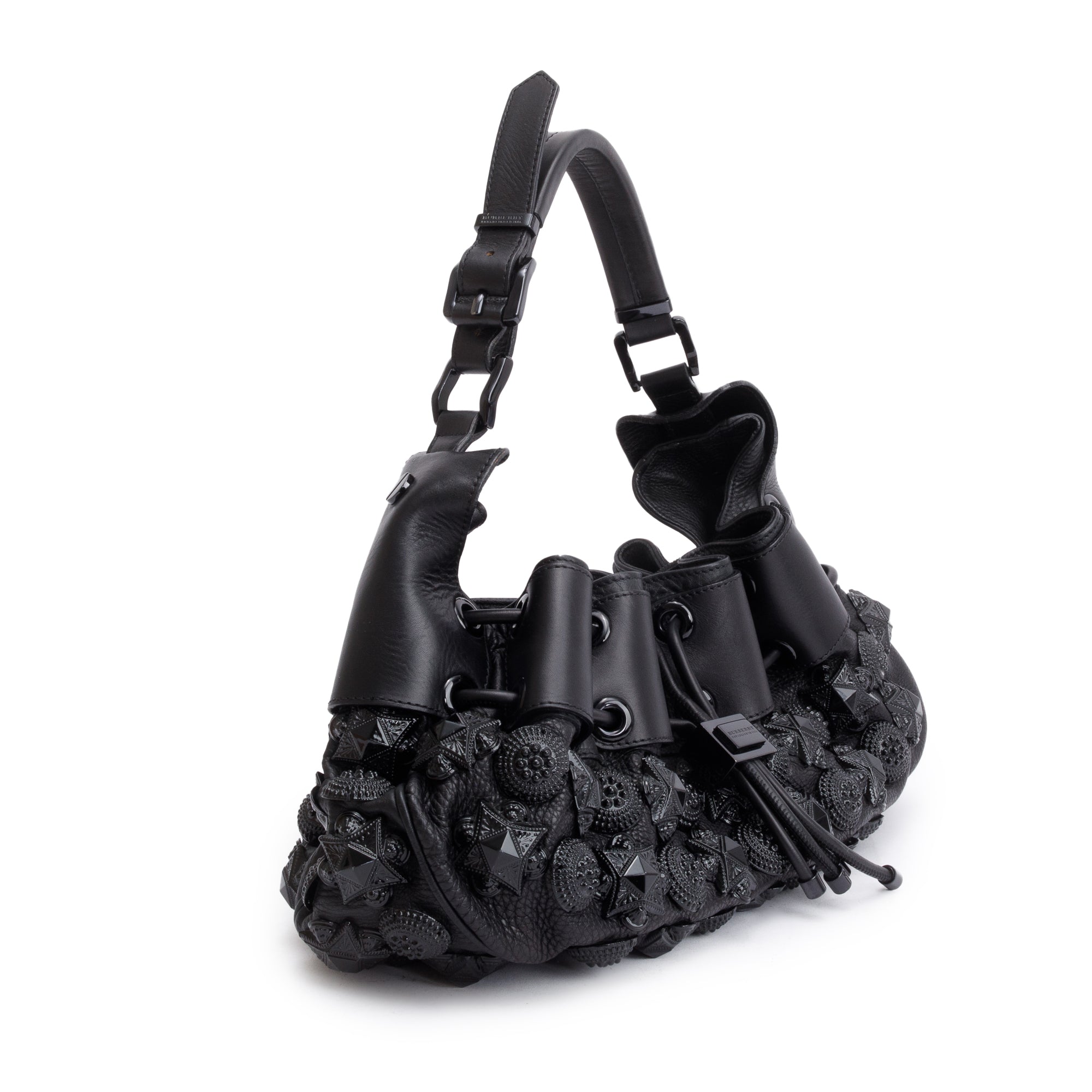 Black Calfskin Leather Mason Warrior Studded Hobo w/ Box