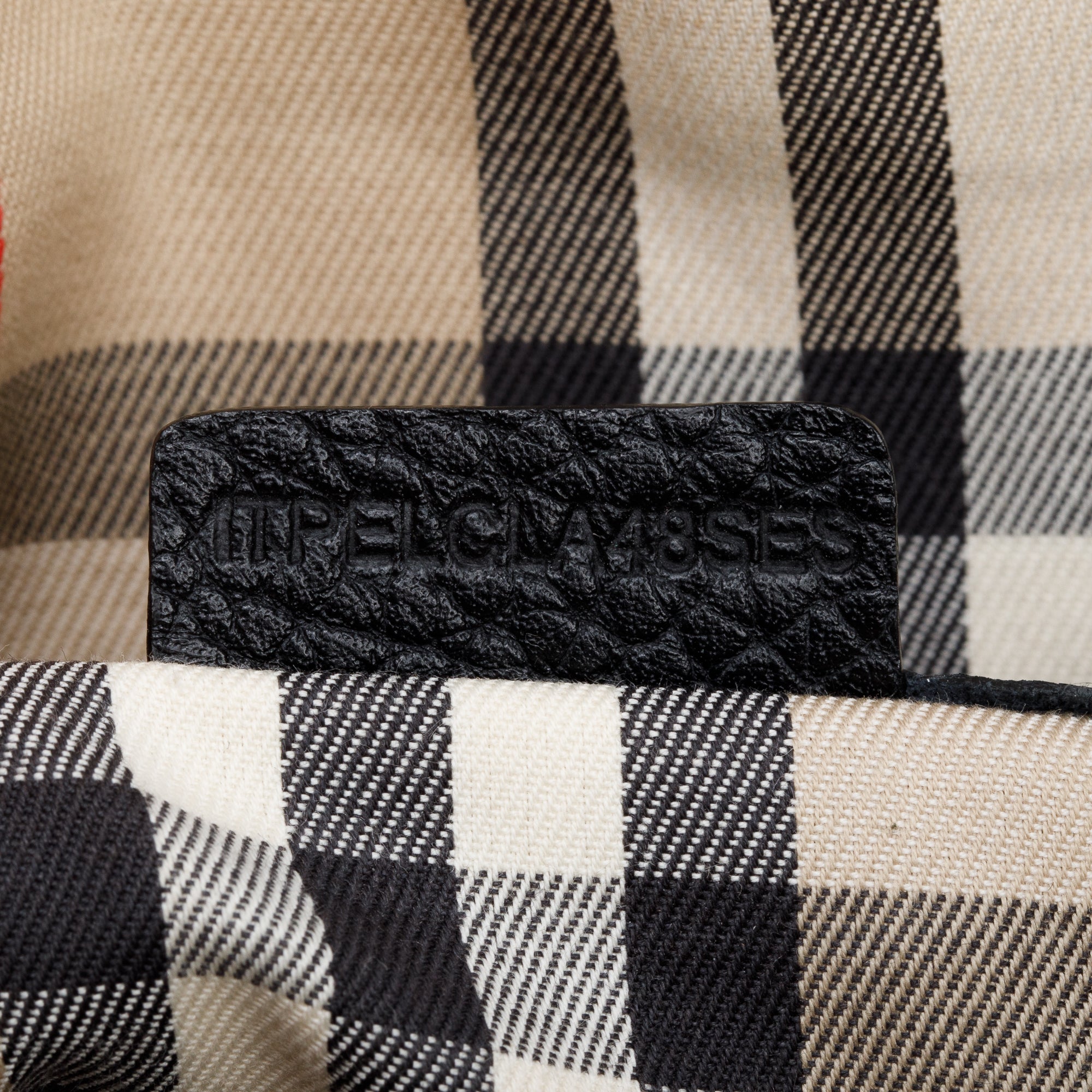 Condition: Very Good, slight tarnishing at hardware, slight scuffing at exterior bottom corners, shape has relaxed due to wear, light marks at interior.