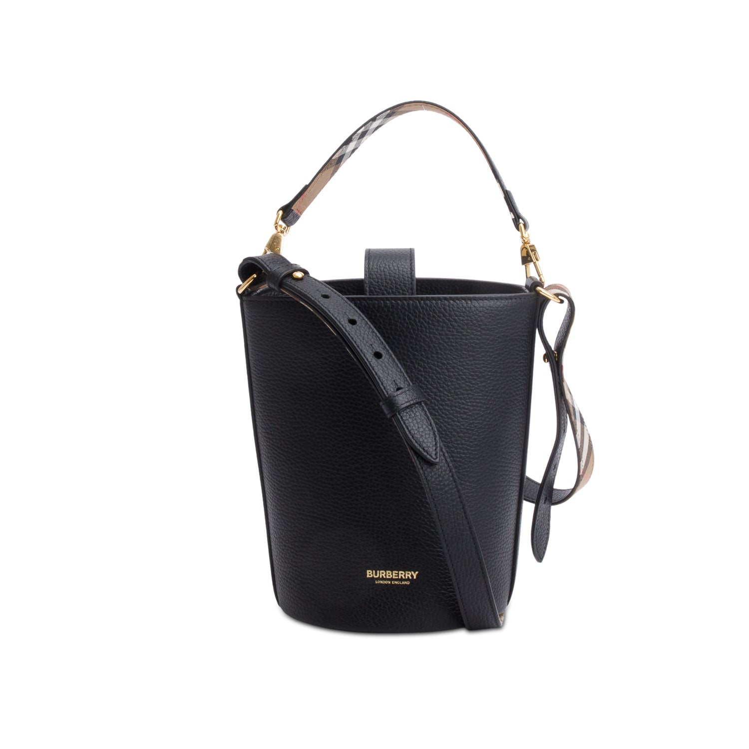 Black Grainy Leather Small Bucket Bag w/ Strap