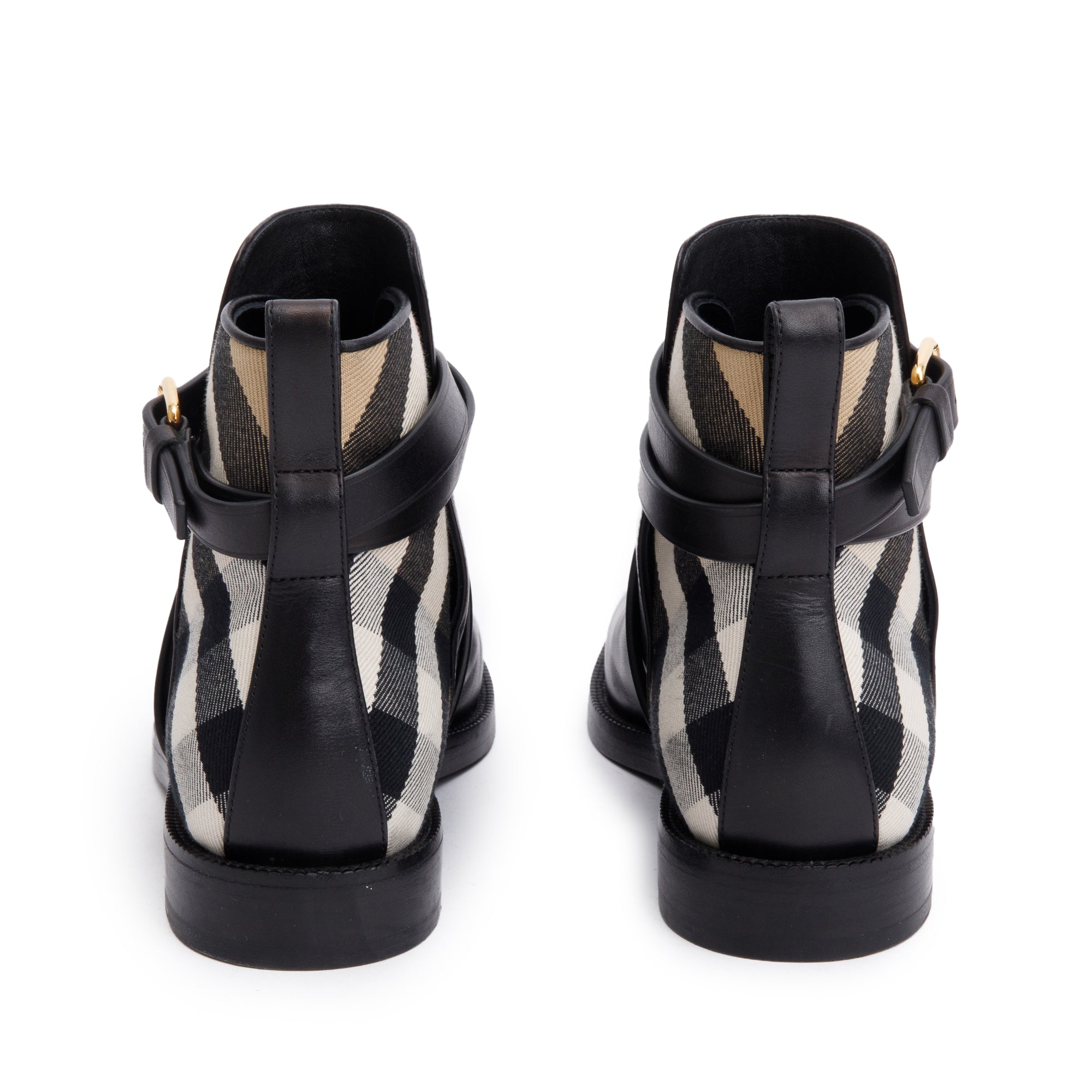 Black Leather Nova Check Chelsea Ankle Boots, Size 36
