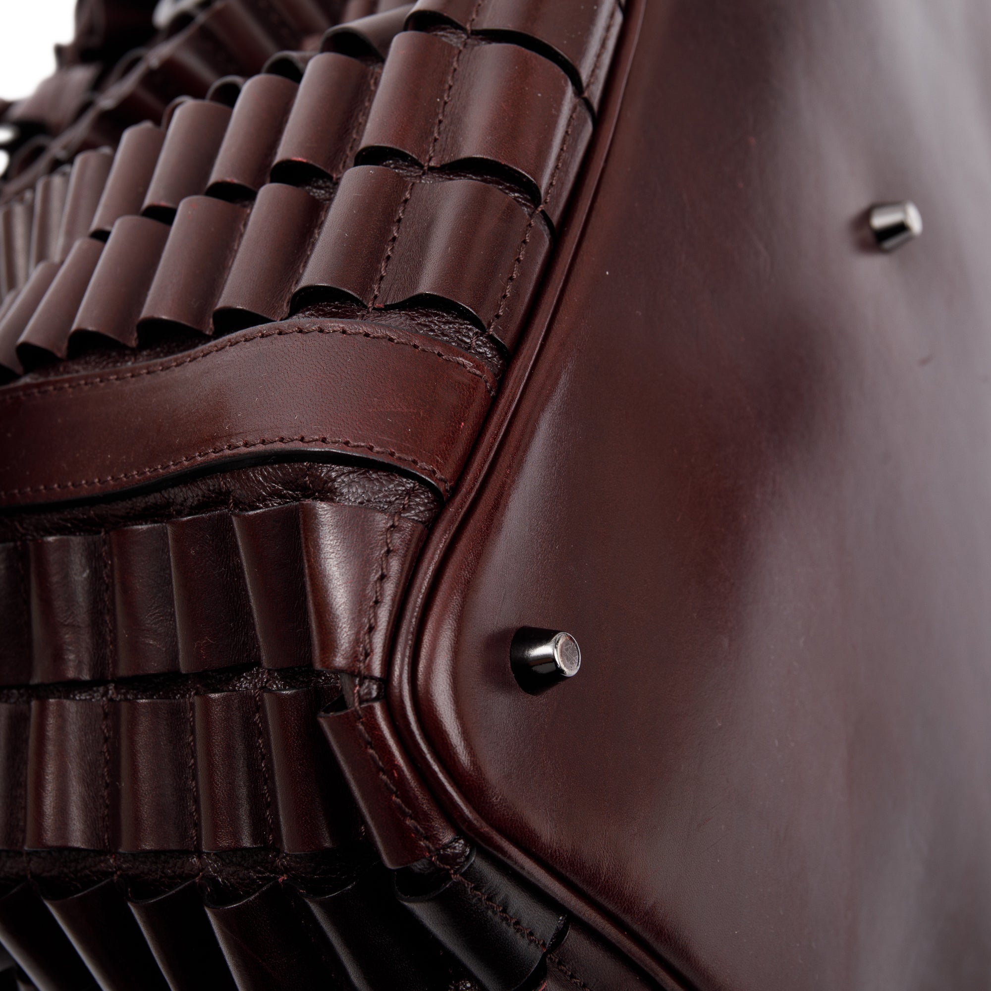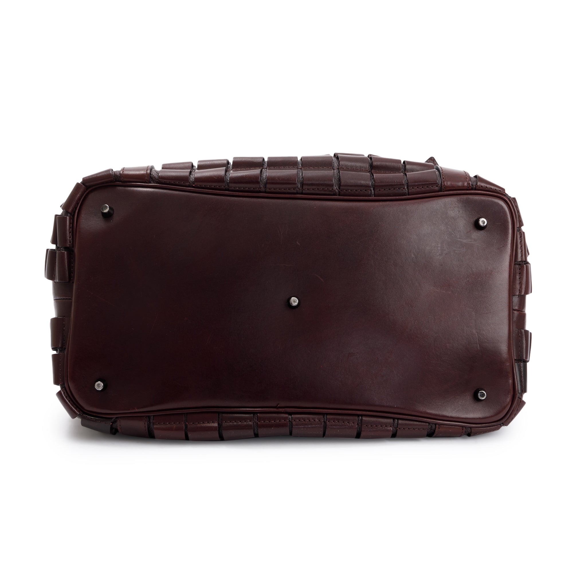 Burgundy Calfskin Leather Cartridge Pleated Lowry Tote w/ Strap