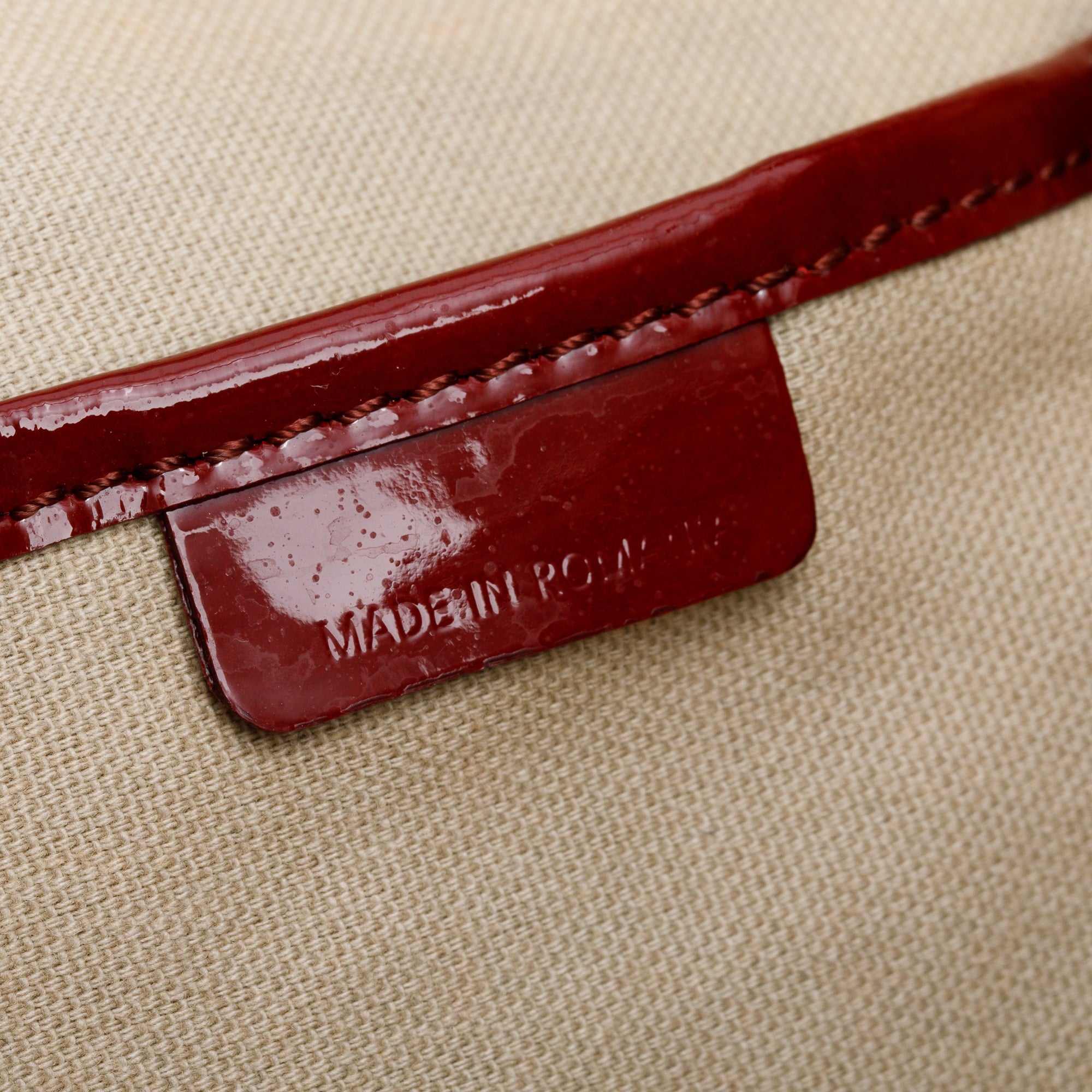 Burgundy Patent Heart Print Supernova Coated Canvas Nickie Tote Bag