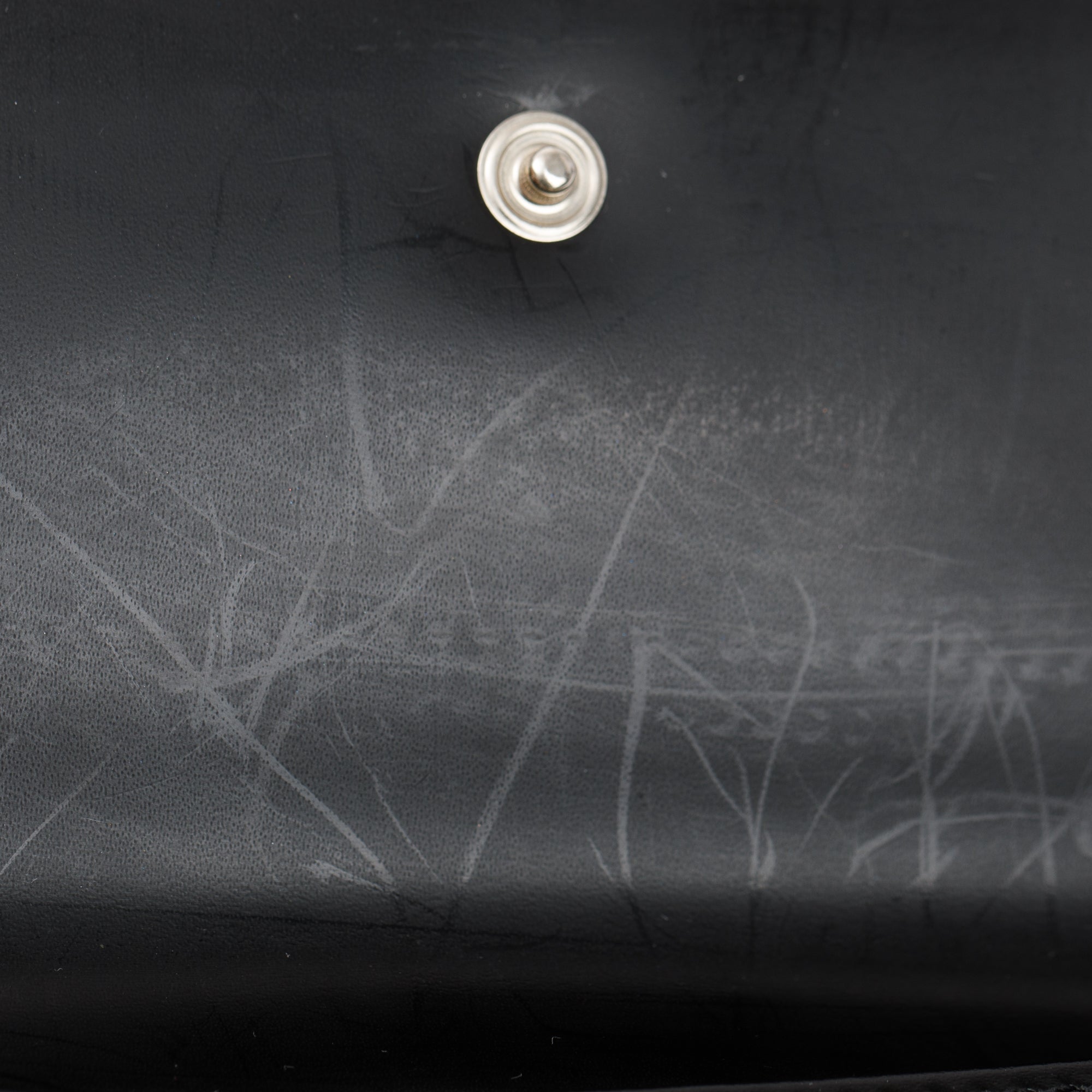 Condition: Good; slight scratches at hardware; slight scuffing at exterior corners and edges; some scratches throughout interior leather lining
