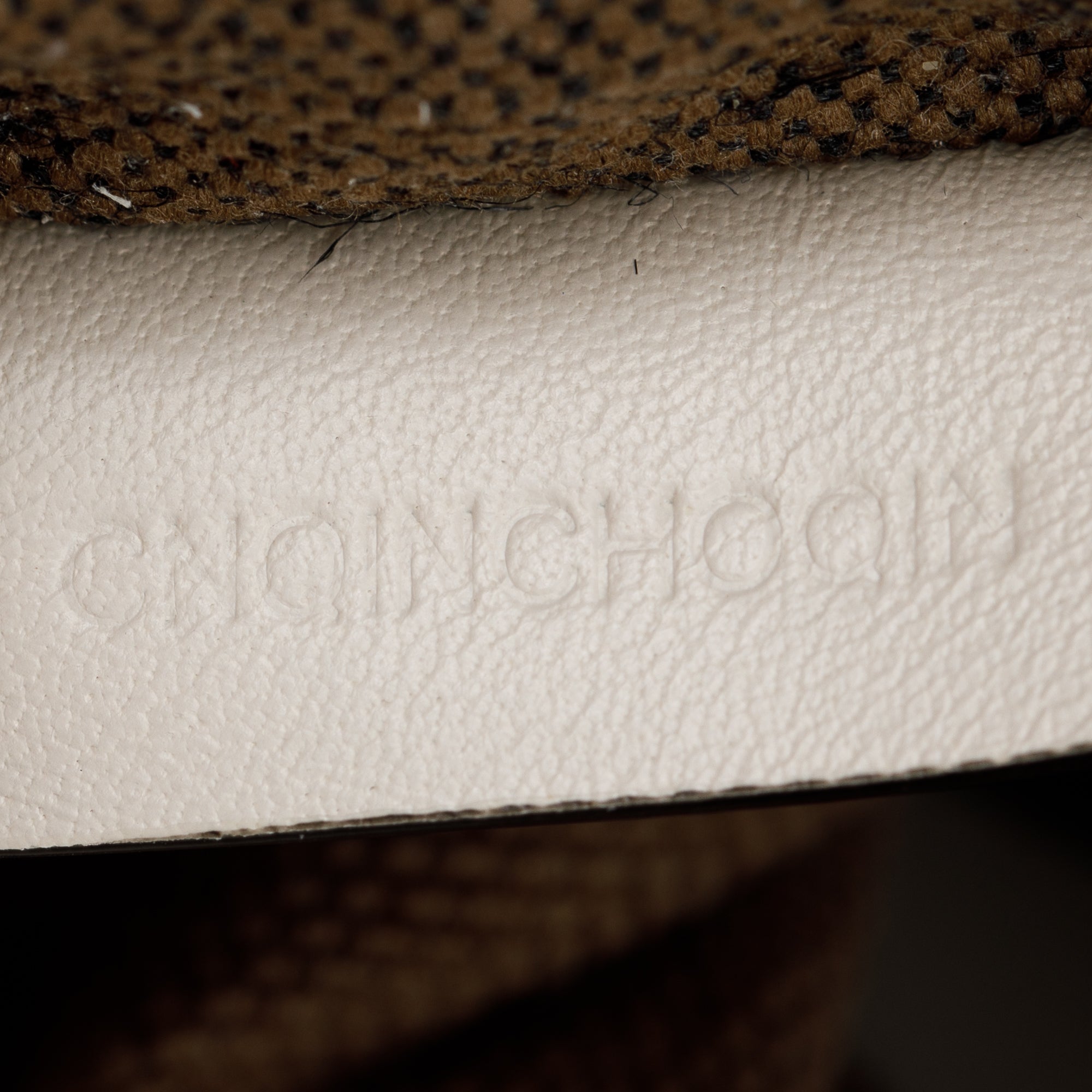 Condition: Very Good; slight scratches at leather trim and shoulder strap; slight marks at exterior canvas; clean interior