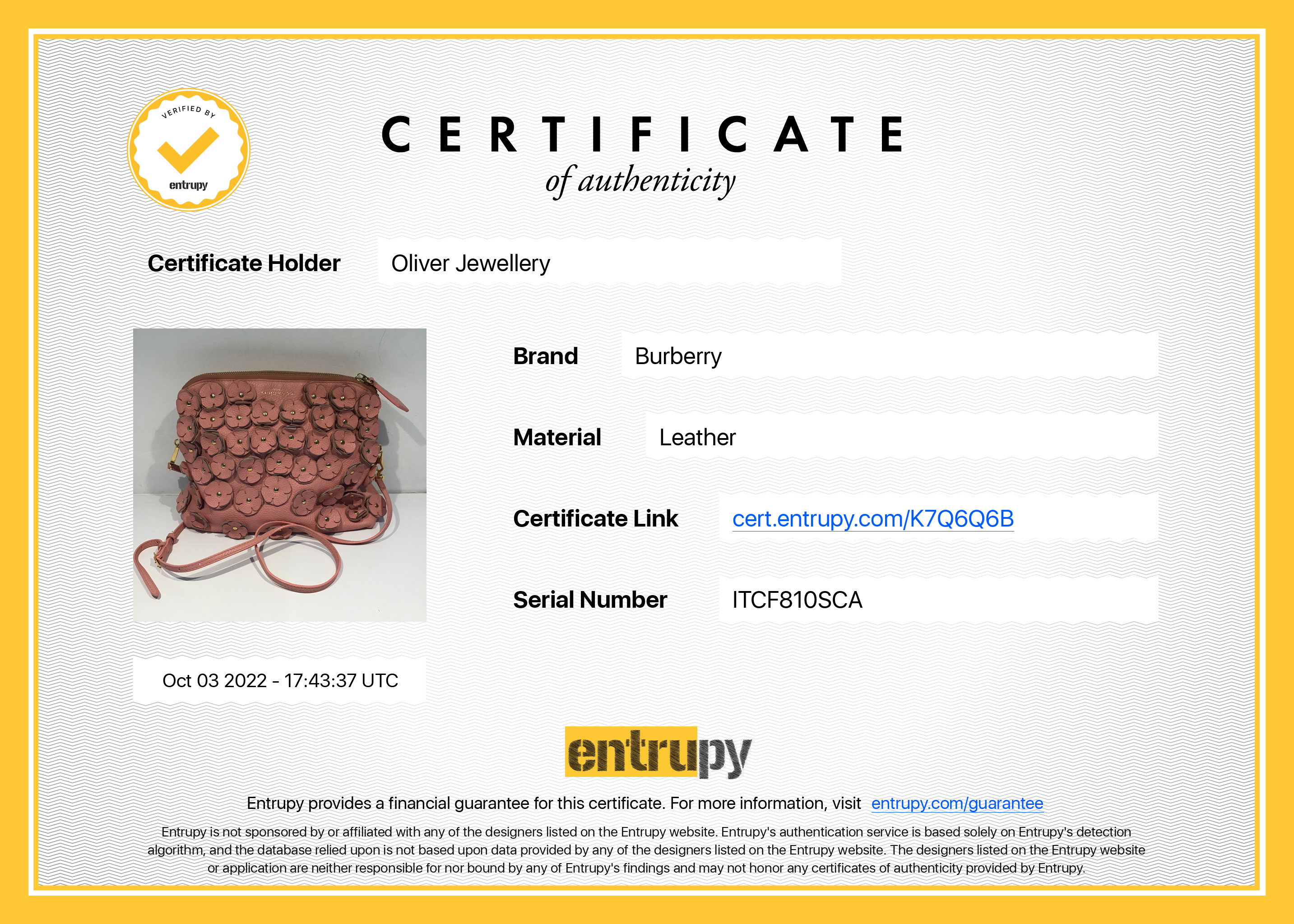 Included Items: Entrupy Certificate of Authenticity #: K7Q6Q6B