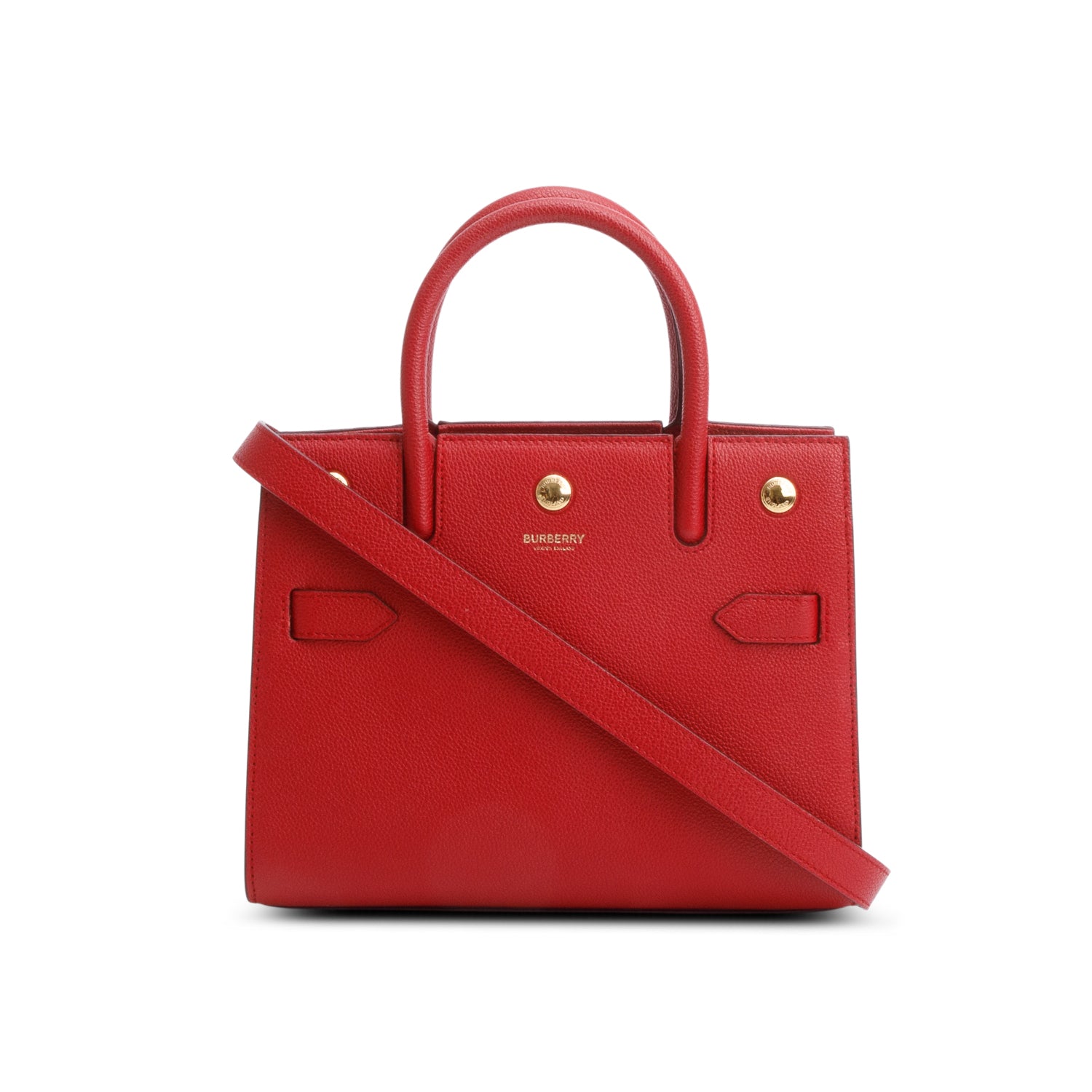 Red Grainy Calfskin Mini Title Top Handle Bag w/ Strap
