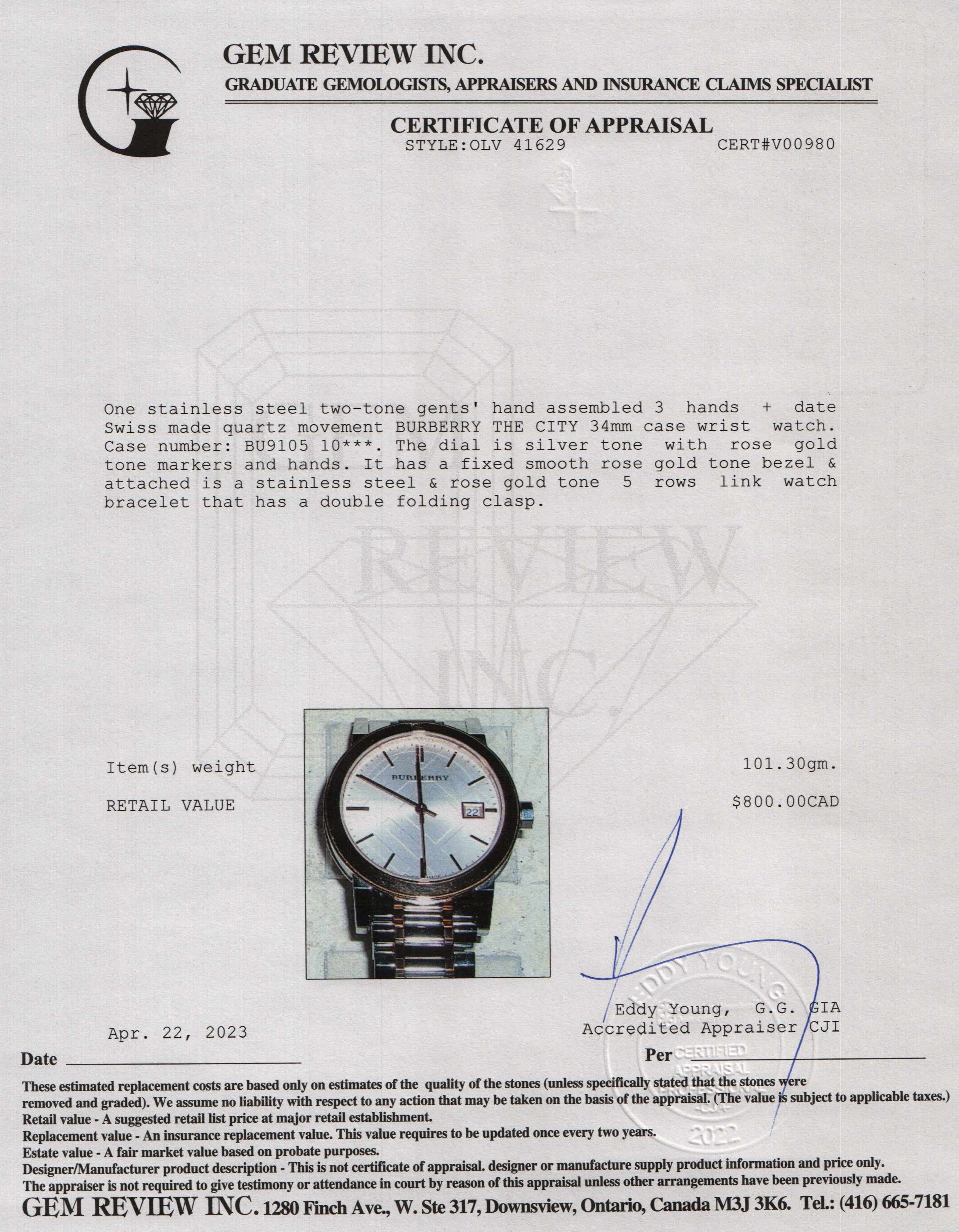 Included Items: Original Burberry Box & Booklet and Gem Review Appraisal