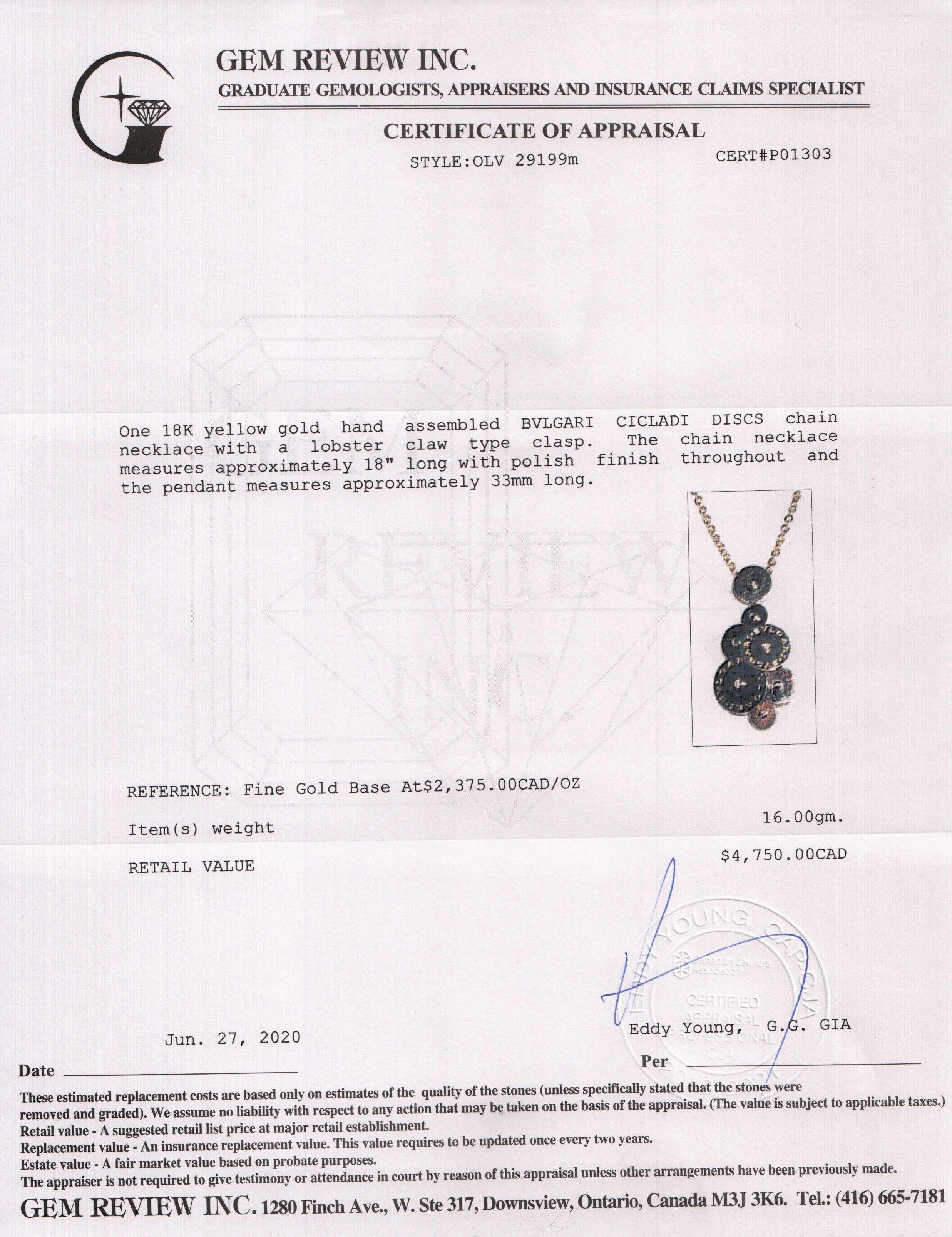 BVGLARI 18k Gold Cicladi Disc Pendant Necklace