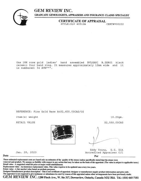 BVLGARI 18k Rose Gold B.Zero1 Black Ceramic Four-Band Ring