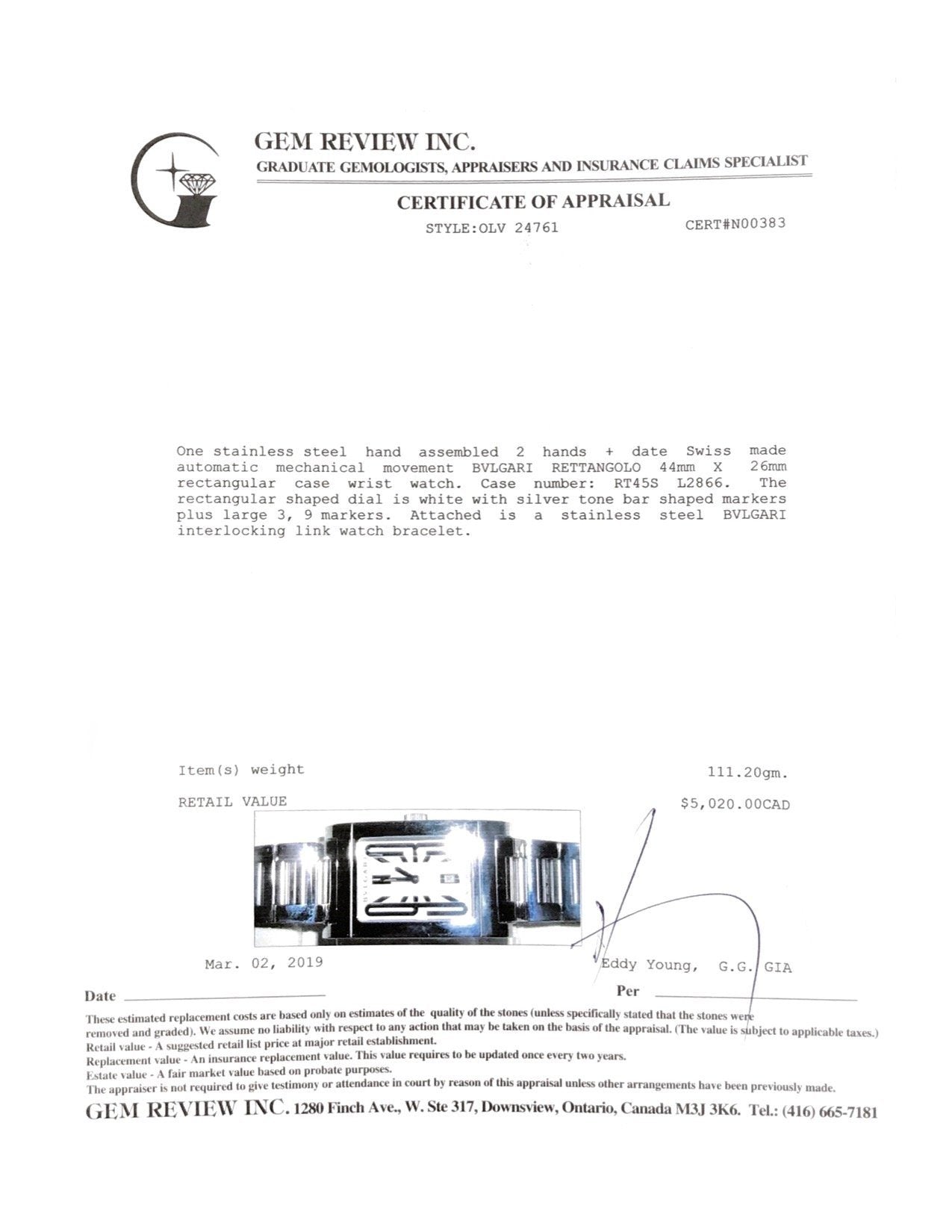 Included Items: Original BVLGARI Box and Gem Review Appraisal