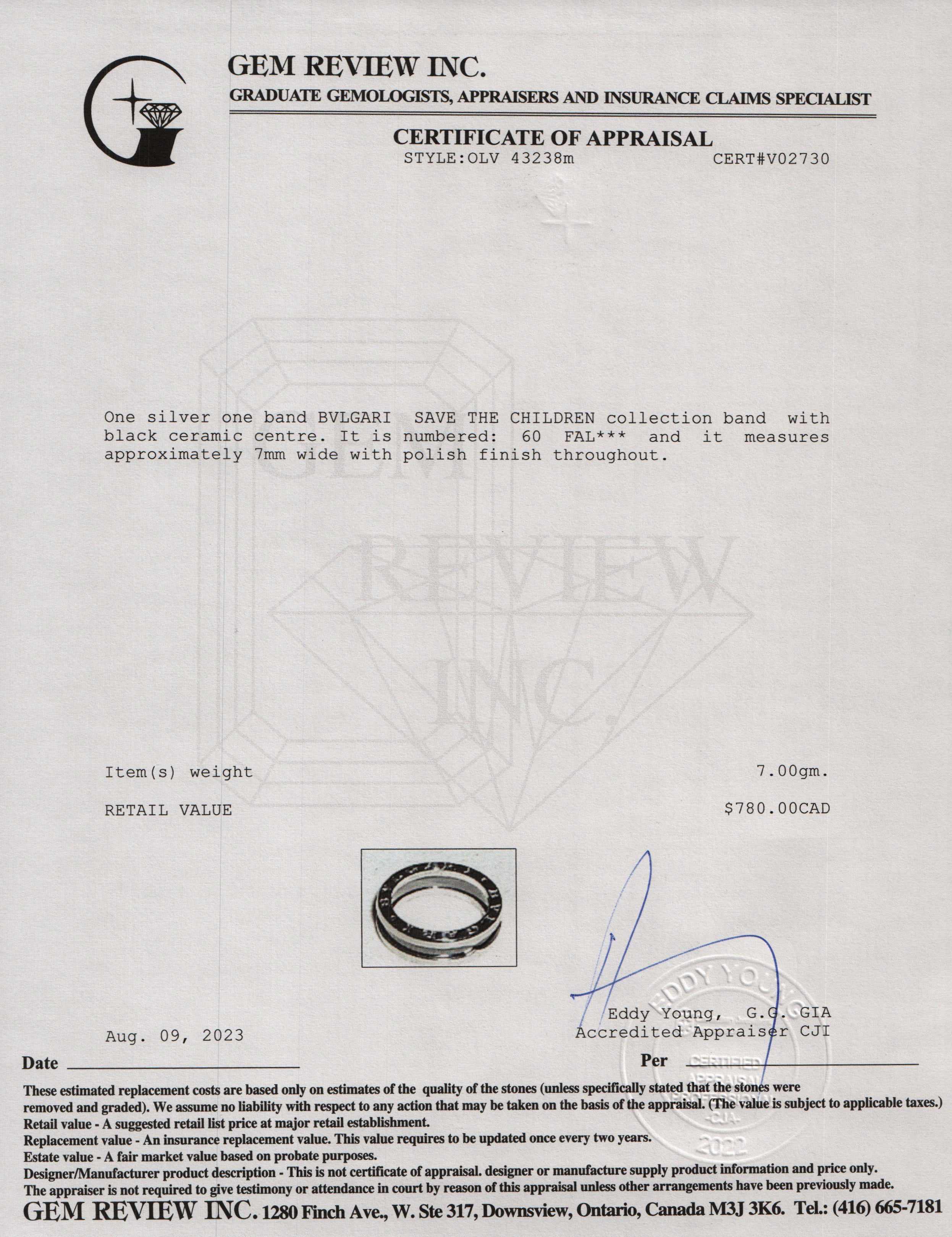 BVLGARI Save the Children One-Band Ring with Black Ceramic