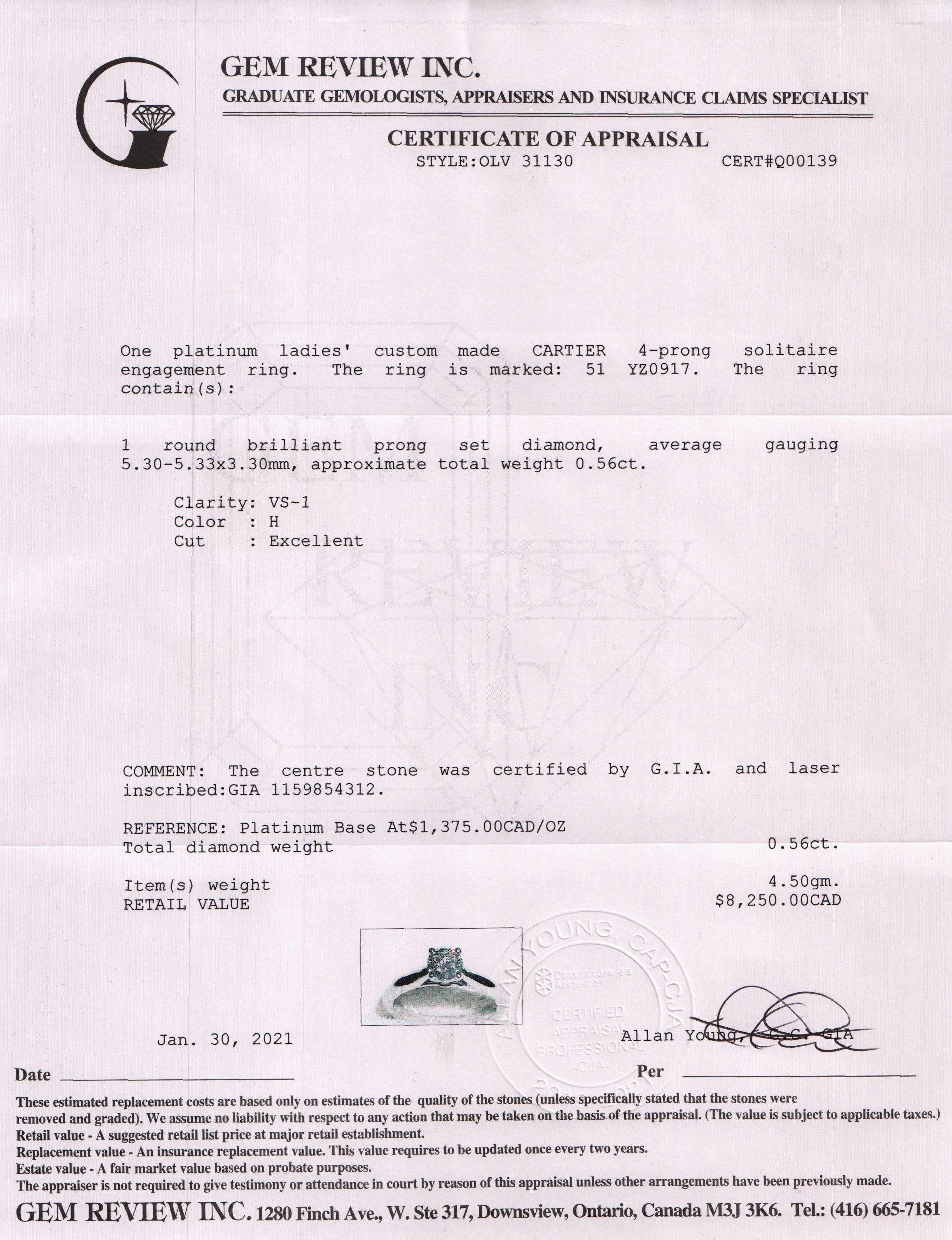- Signature/Hallmarks: Cartier PT950 51 0.56 YZ0917