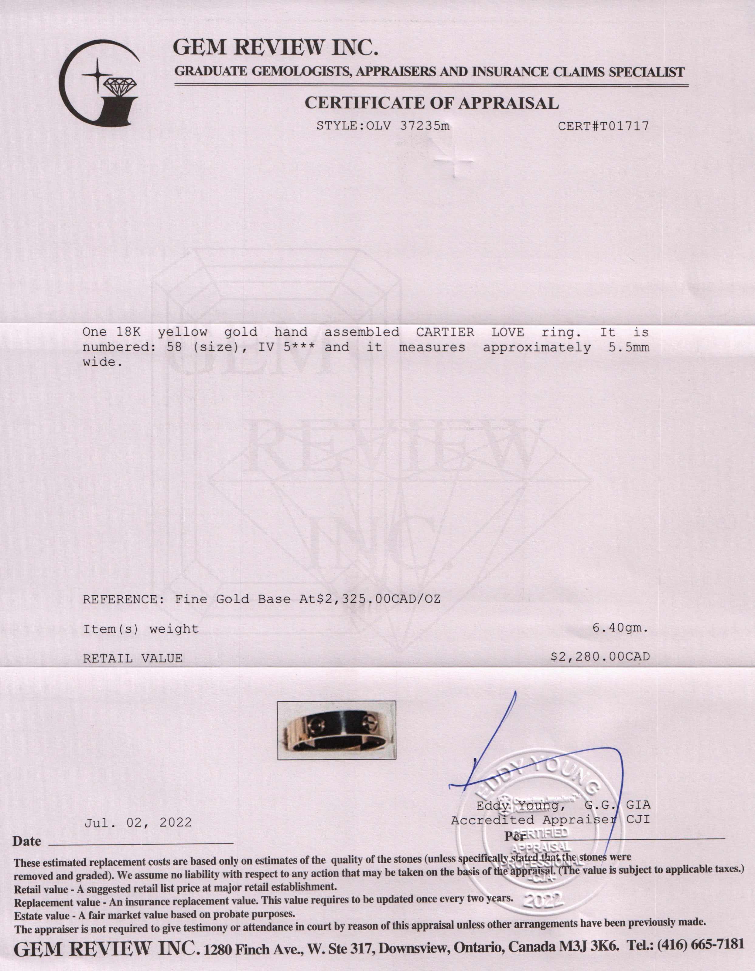 Included Items: Gem Review Appraisal