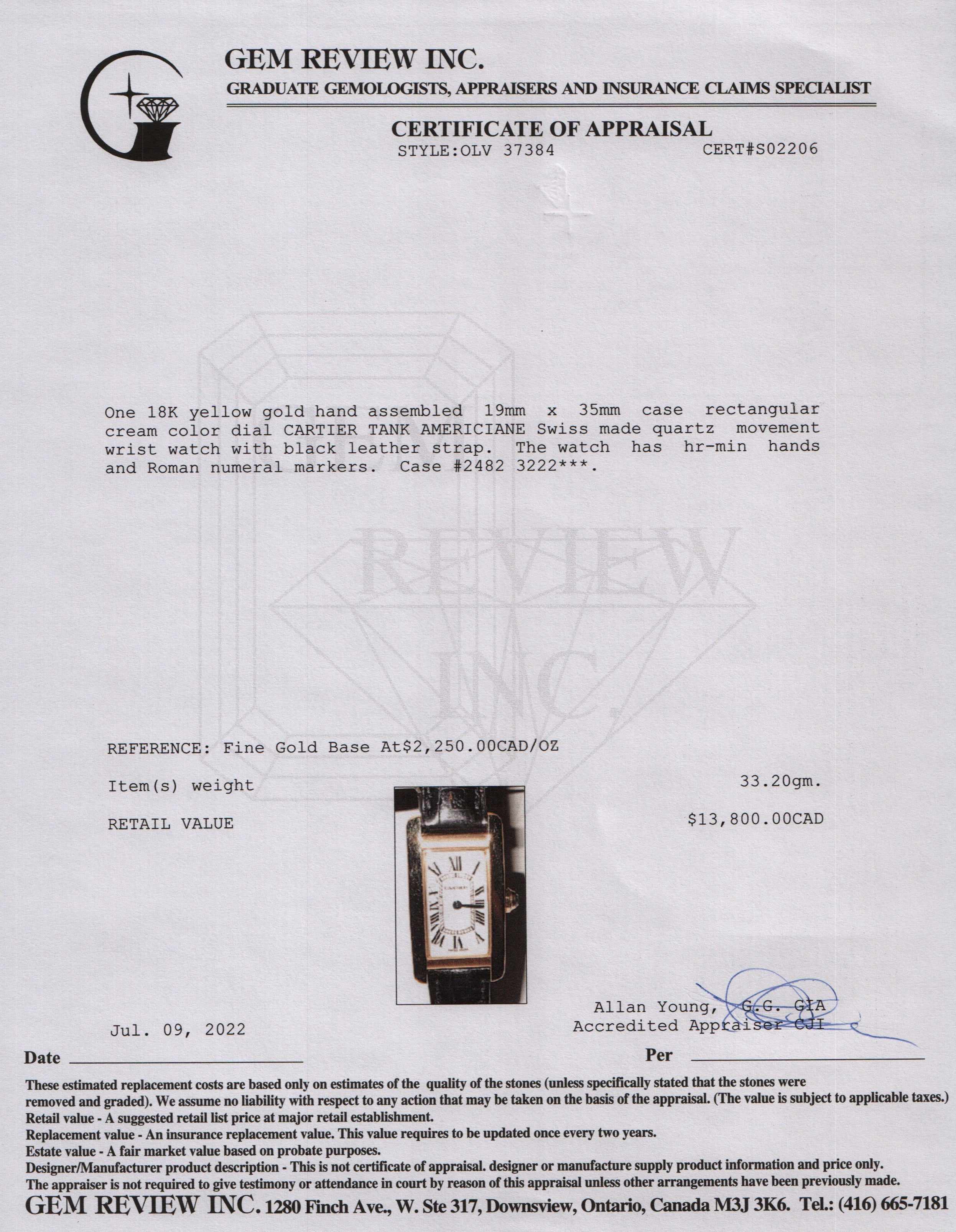 18k Gold Tank Americaine Watch, Small Model w/ Box & Papers