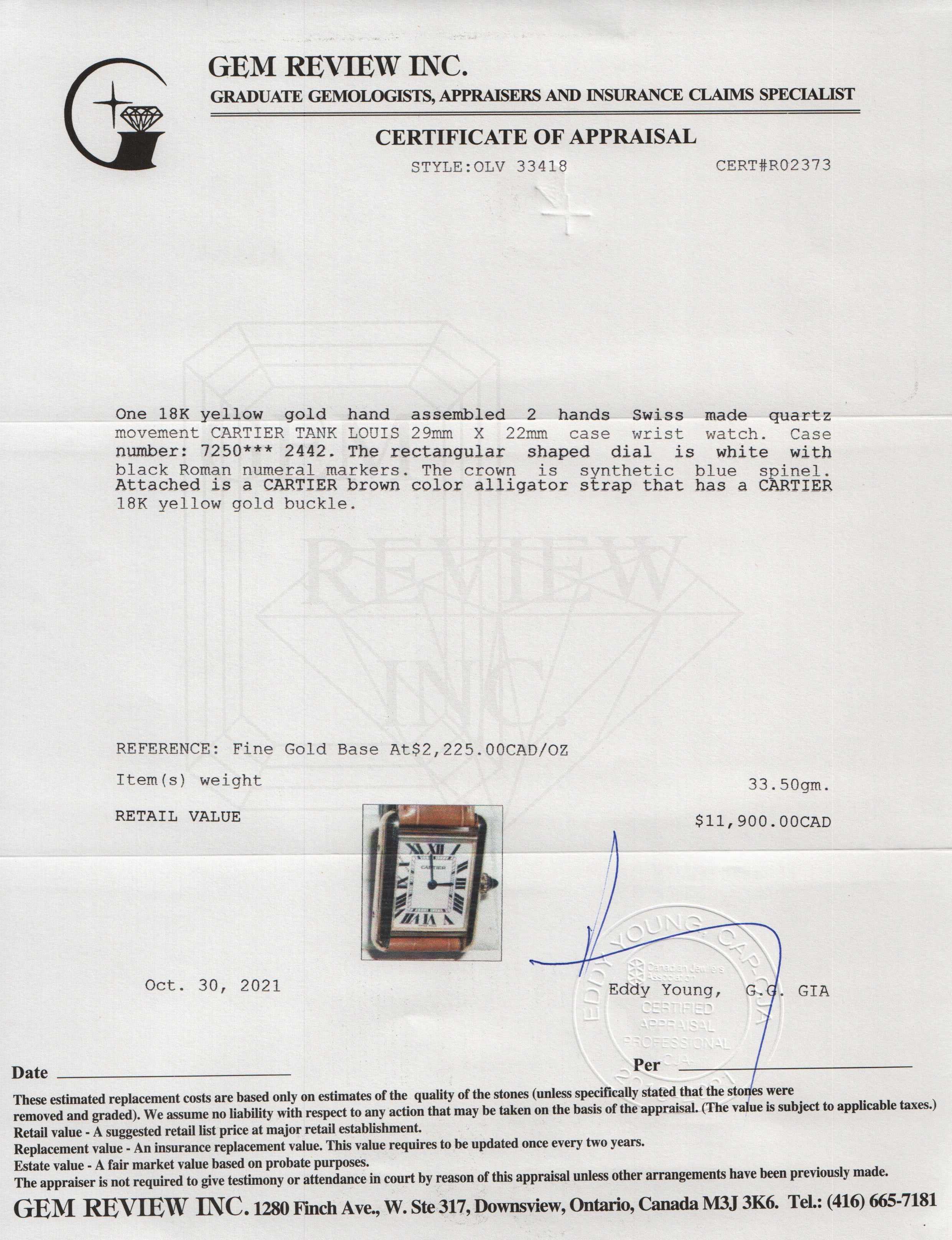 Included Items: Original Cartier Booklets & Certs and Gem Review Appraisal
