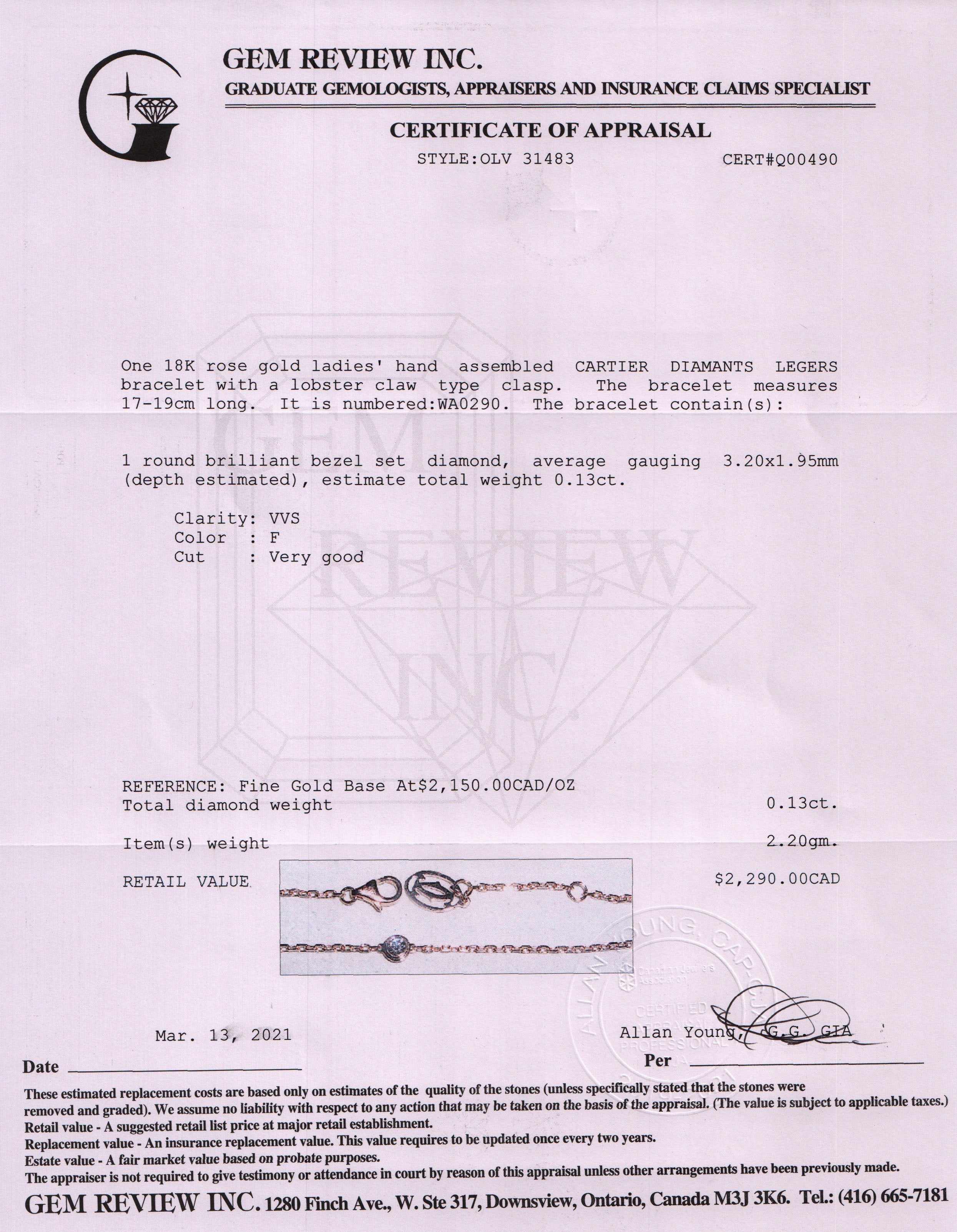 Cartier 18k Rose Gold Diamants Legers Bracelet w/ Box & Certificate