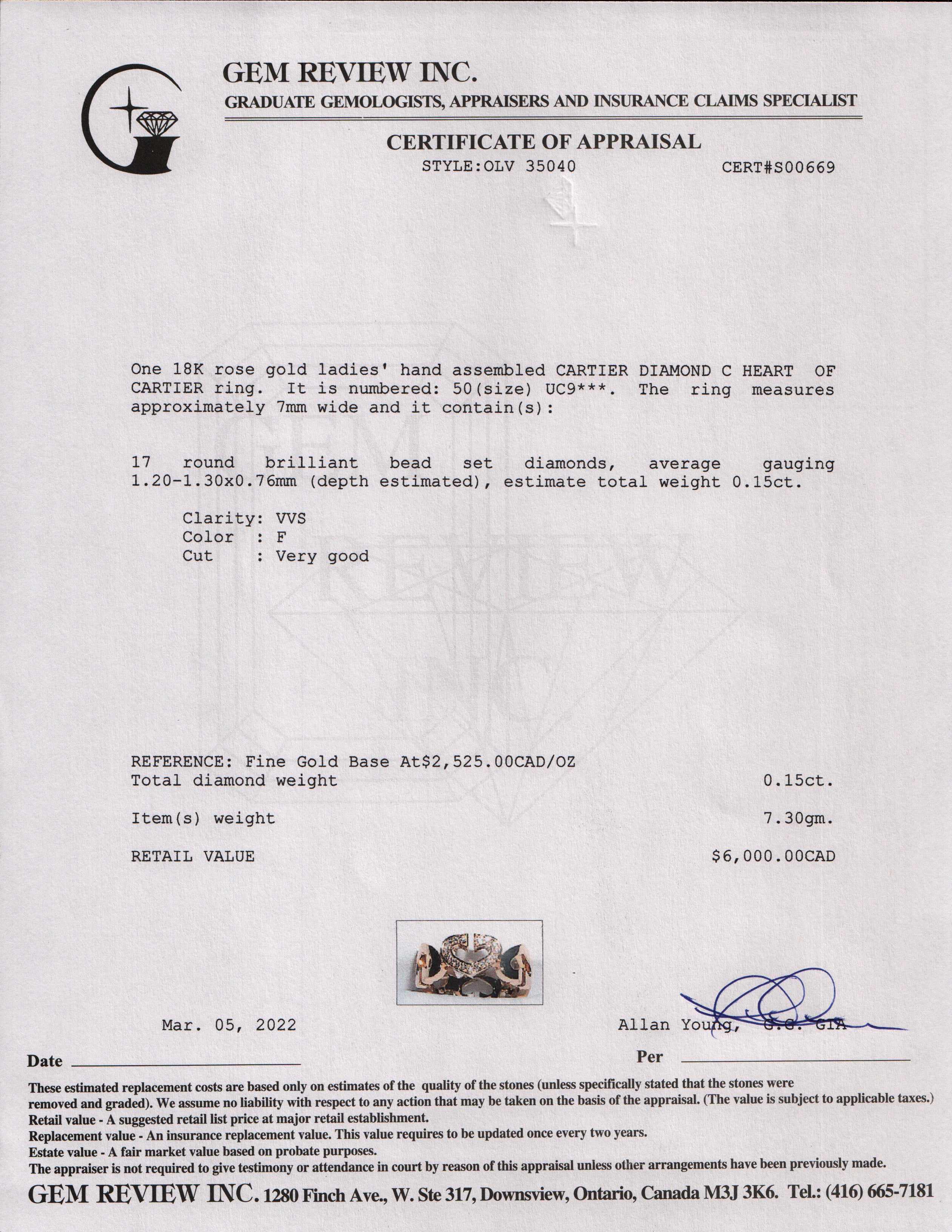 Cartier 18k Rose Gold Diamond C Heart of Cartier Ring