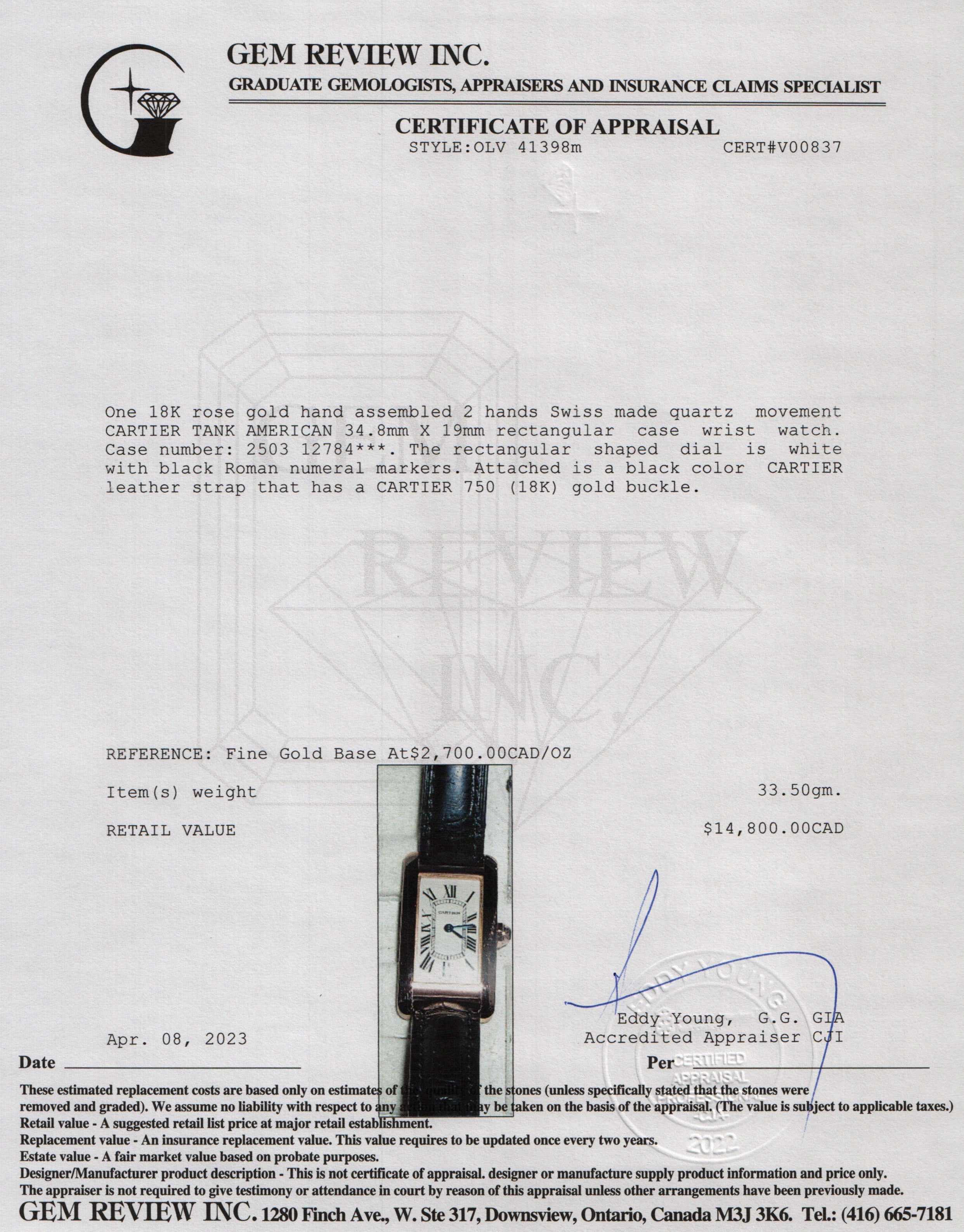 Cartier 18k Rose Gold Tank Americaine Watch, Small Model