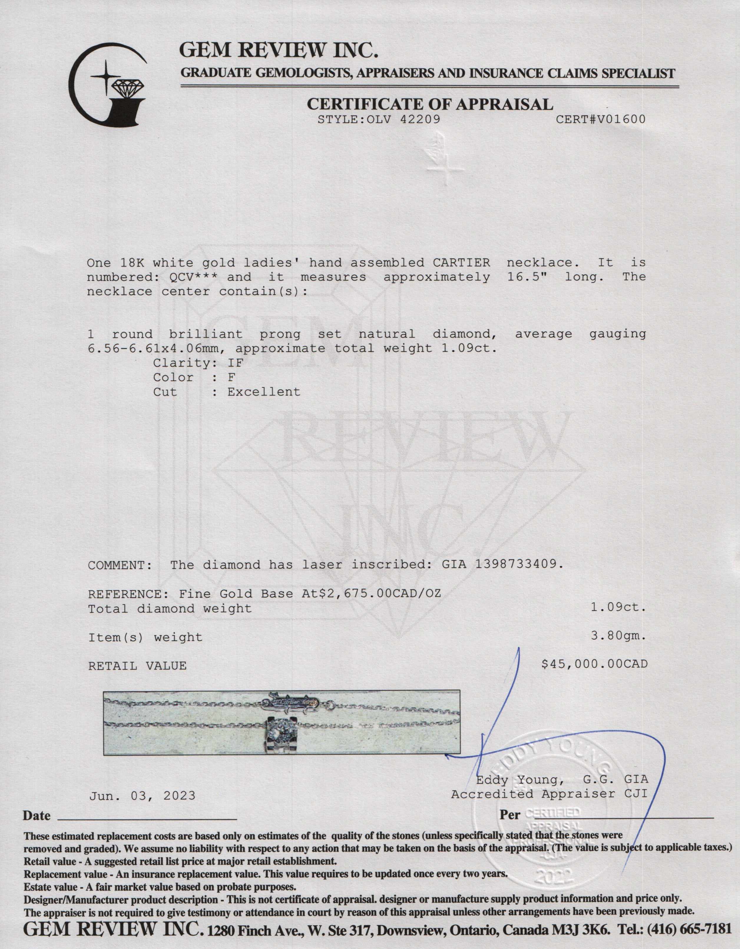 Included Items: Original Cartier Pouch, GIA Certificate and Gem Review Appraisal