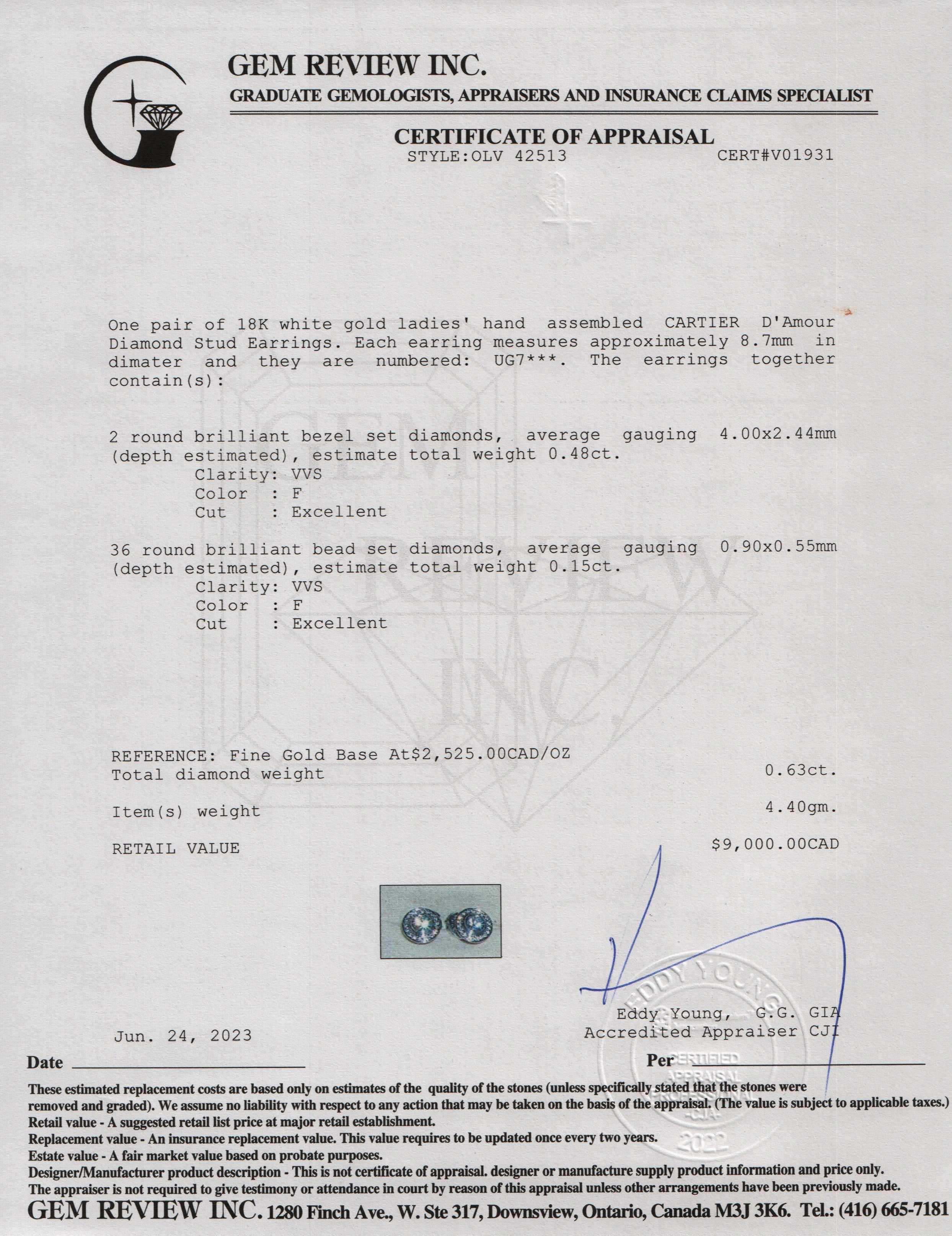Cartier 18k White Gold D'Amour Pave Diamond Stud Earrings