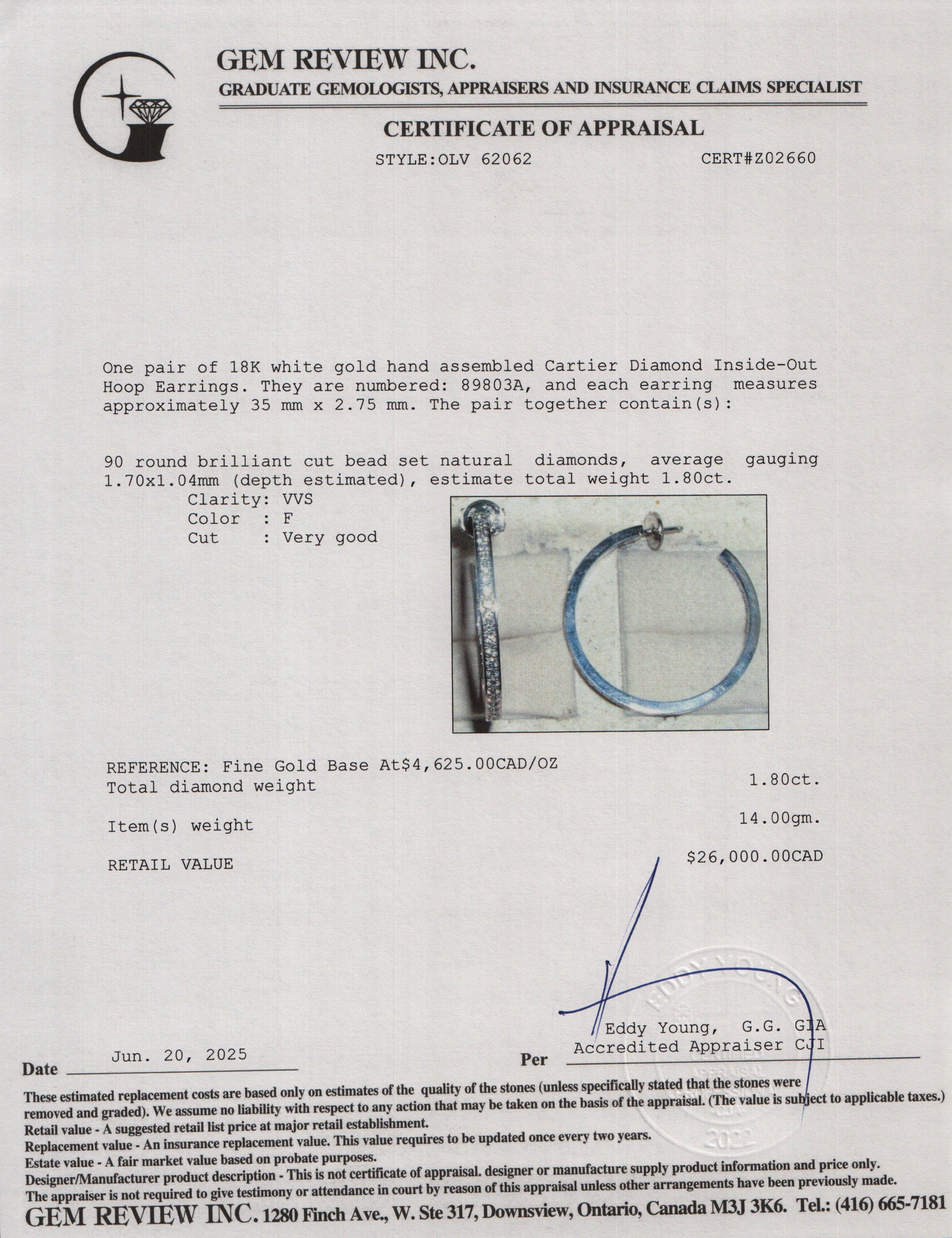 18k White Gold Diamond Inside-Out Hoop Earrings w/ Box & Certificate
