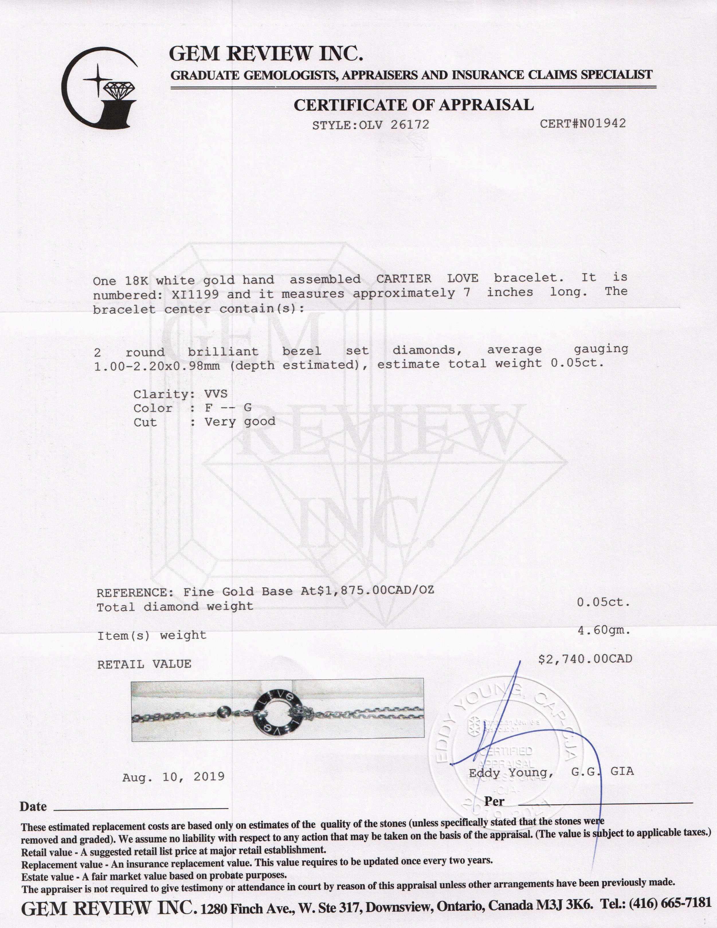 Cartier 18k White Gold Love Bracelet with Diamonds
