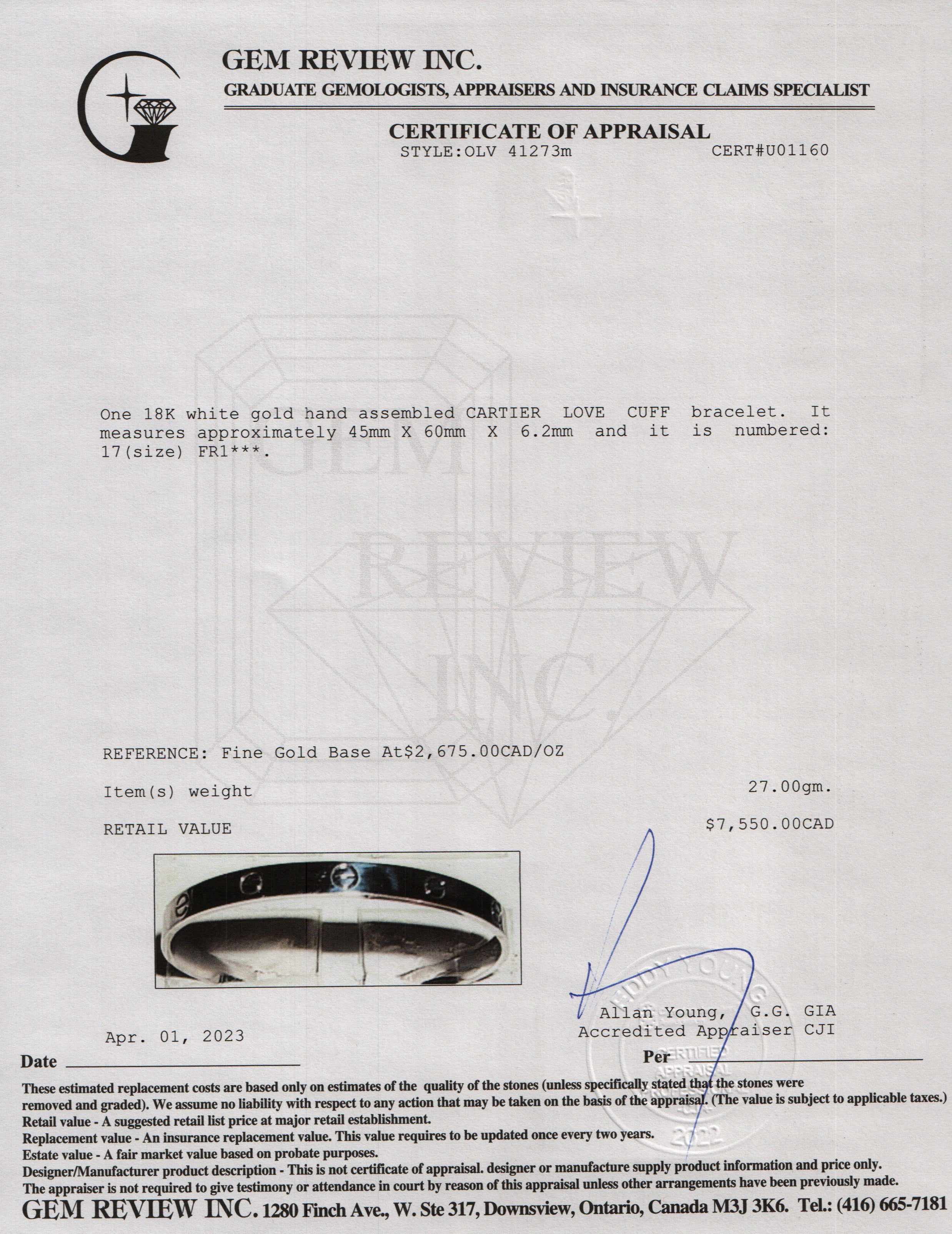 Included Items: Original Cartier Box & Gem Review Appraisal