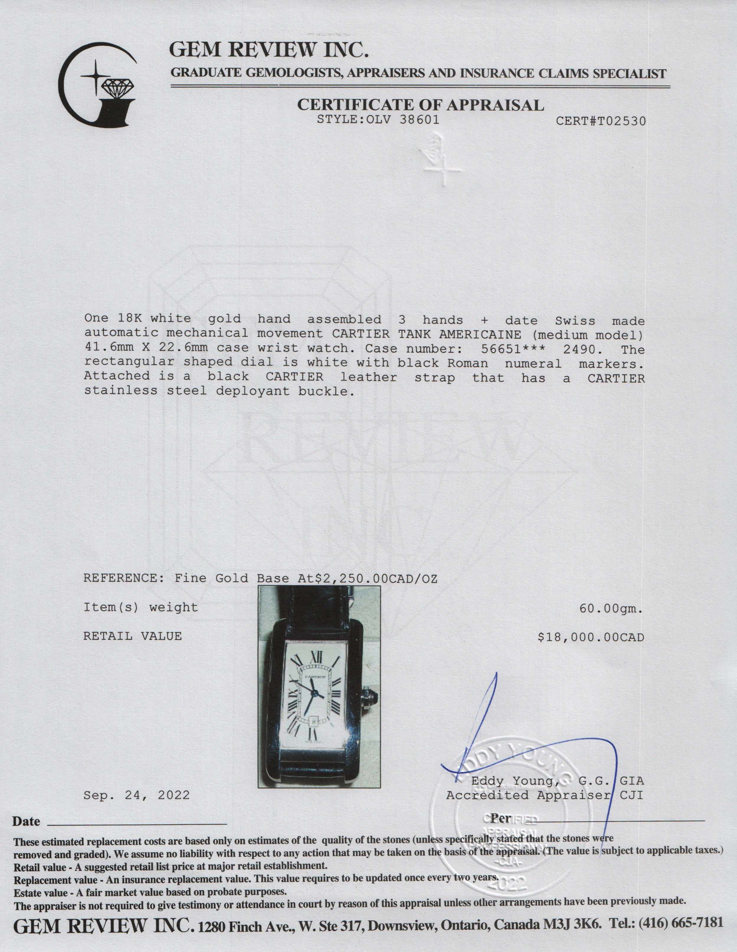 Cartier 18k White Gold Tank Americaine Watch, Medium Model
