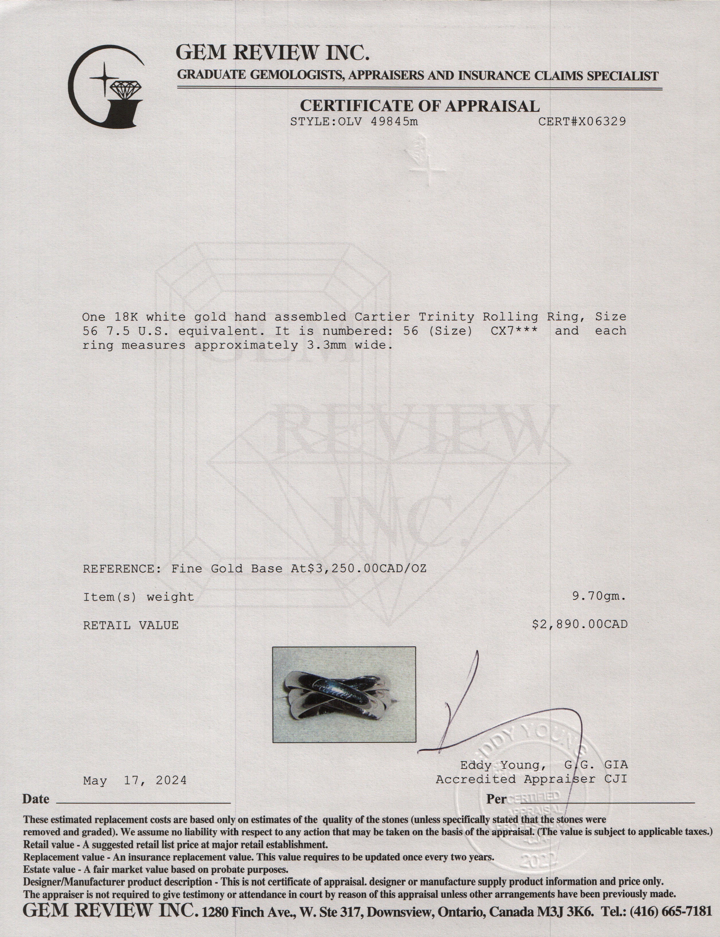 18k White Gold Trinity Rolling Ring, Size 56 7.5