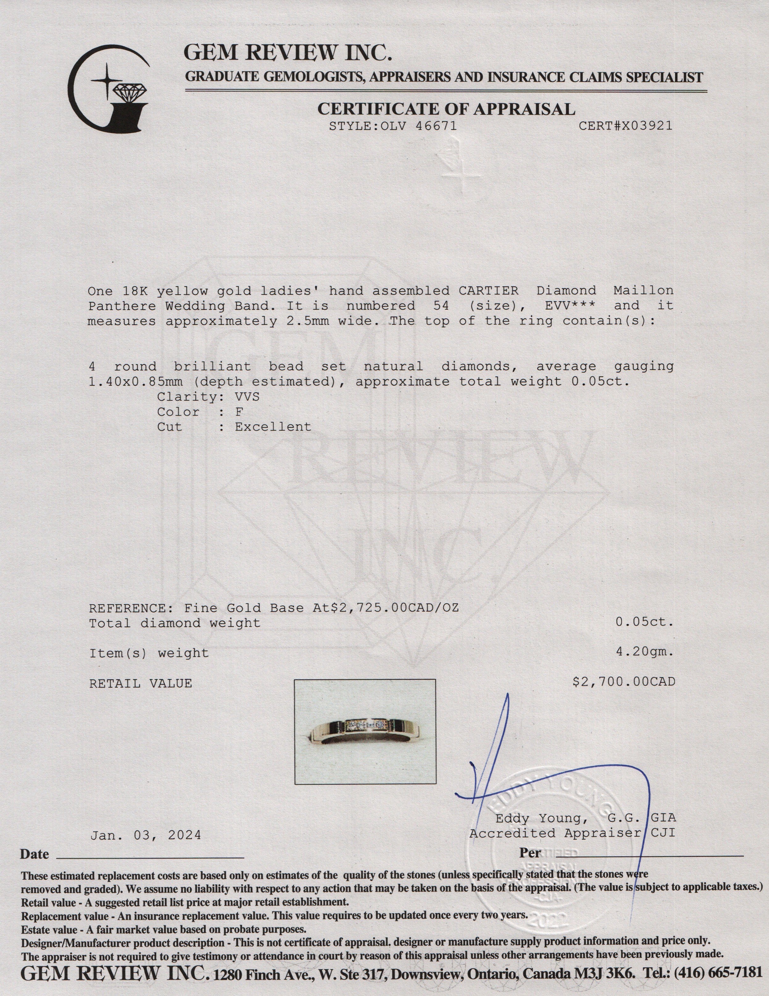 18k Yellow Gold Diamond Maillon Panthere 2.5 MM Wedding Band, Size 54 7