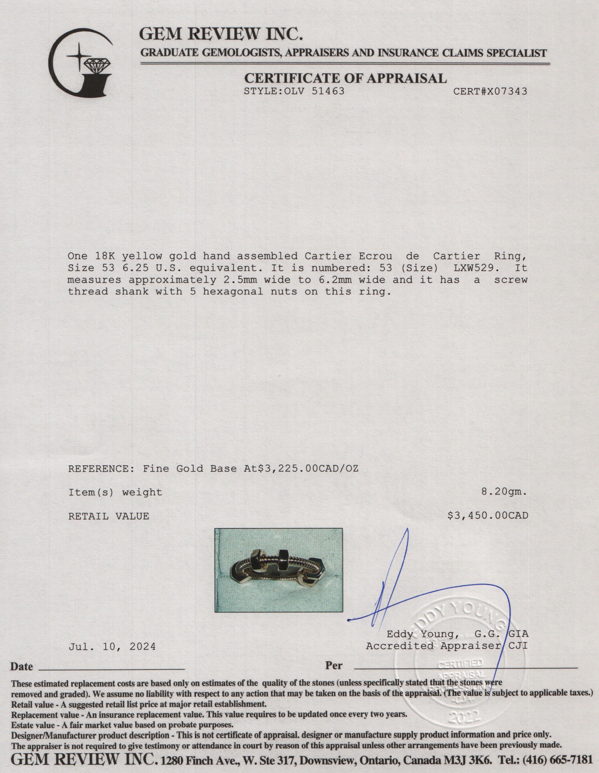 18k Yellow Gold Ecrou de Ring, Size 53 6.25