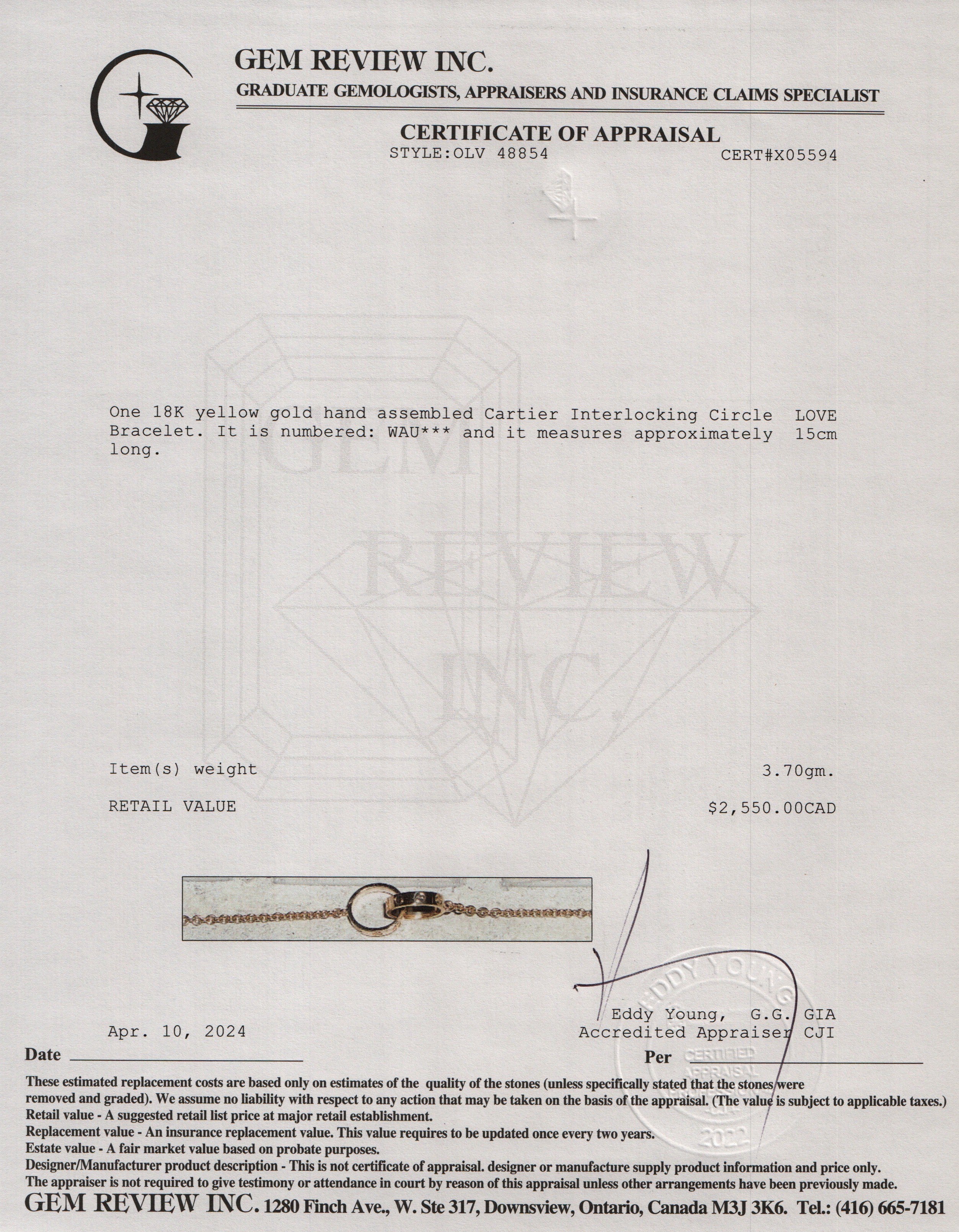 18k Yellow Gold Interlocking Circle LOVE Bracelet