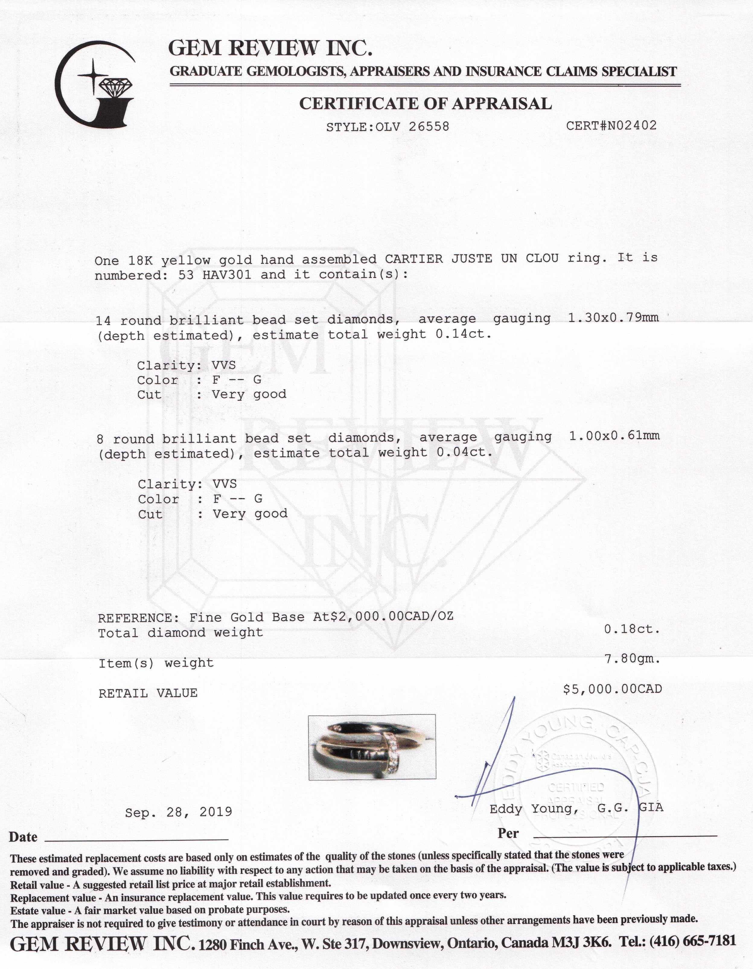 Cartier 18k Yellow Gold Juste Un Clou Ring with Diamonds