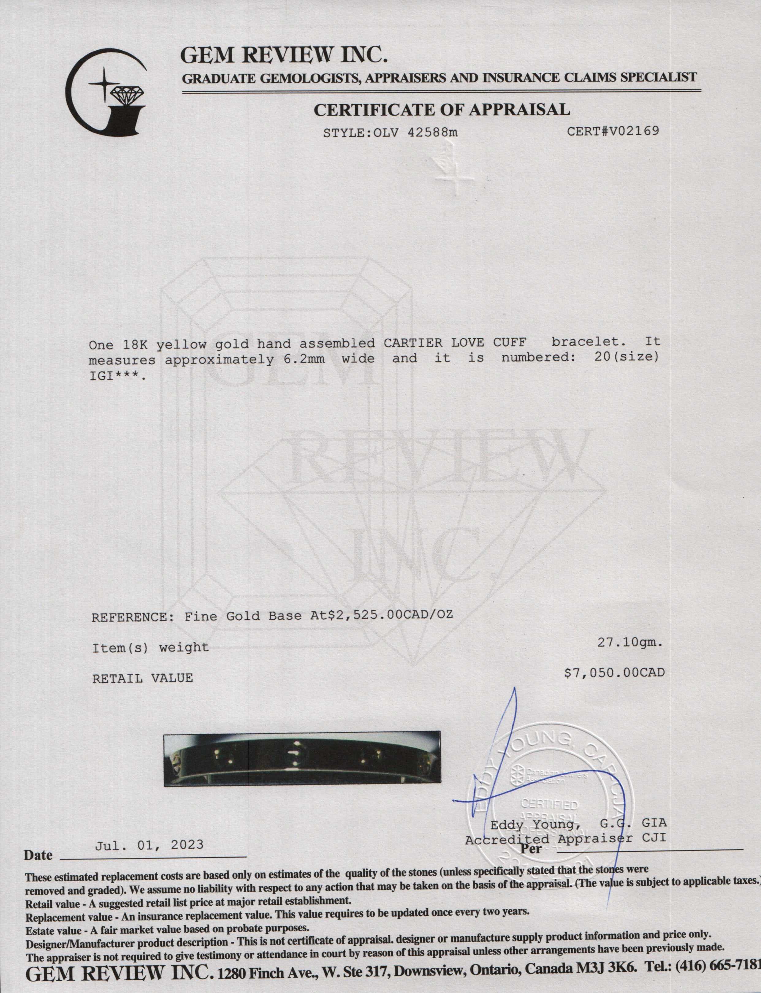 Cartier 18k Yellow Gold Love Cuff Bracelet