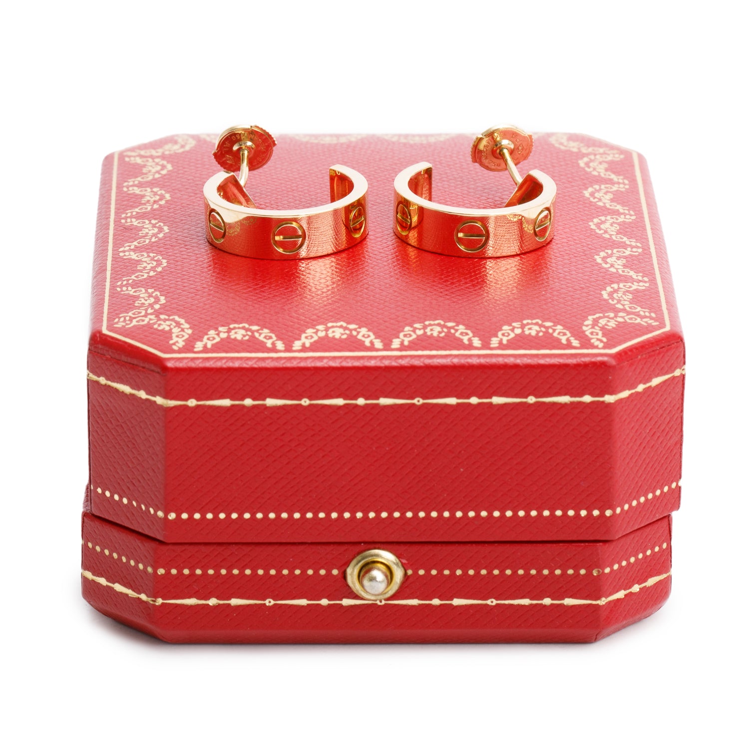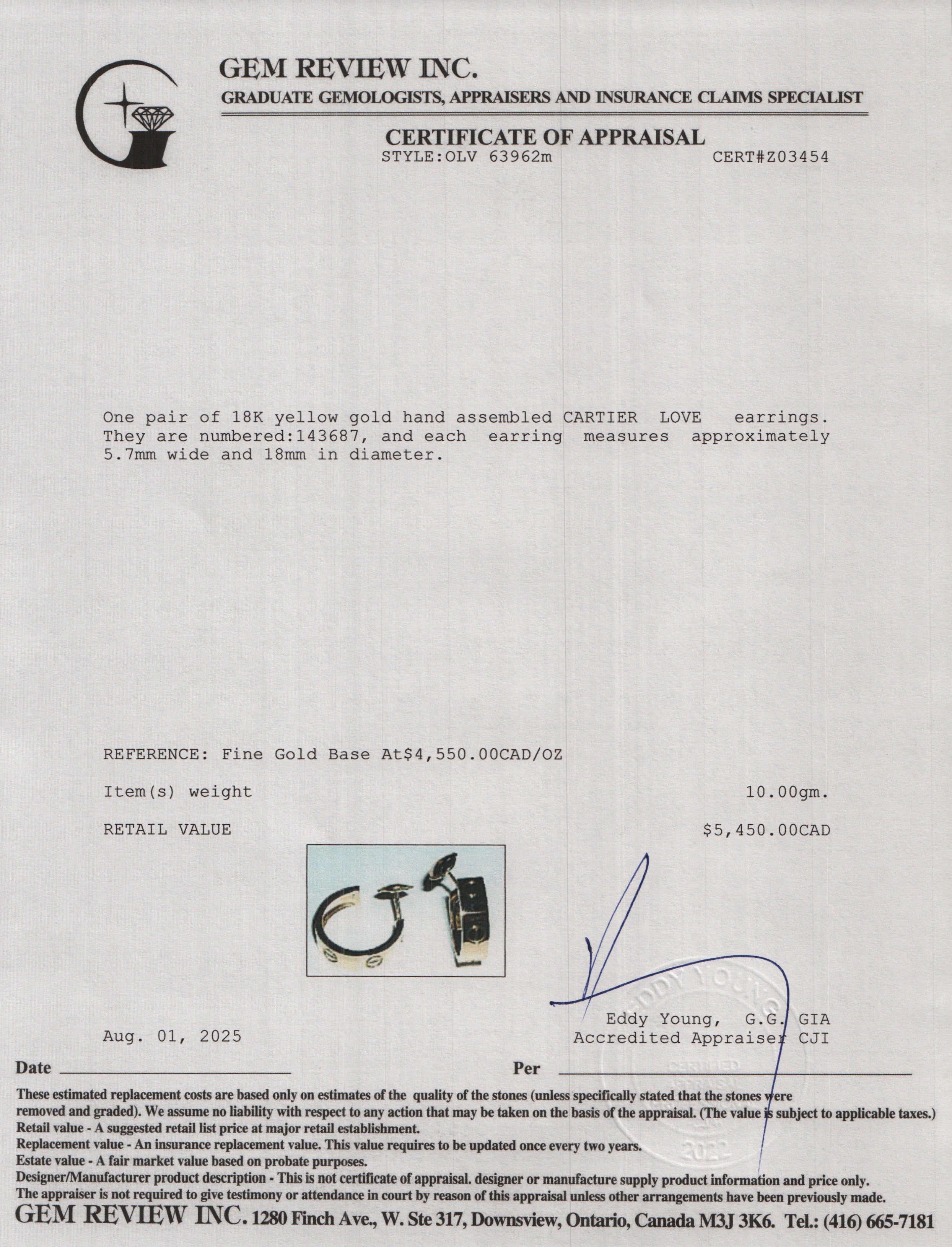18k Yellow Gold Love Hoop Earrings w/ Box