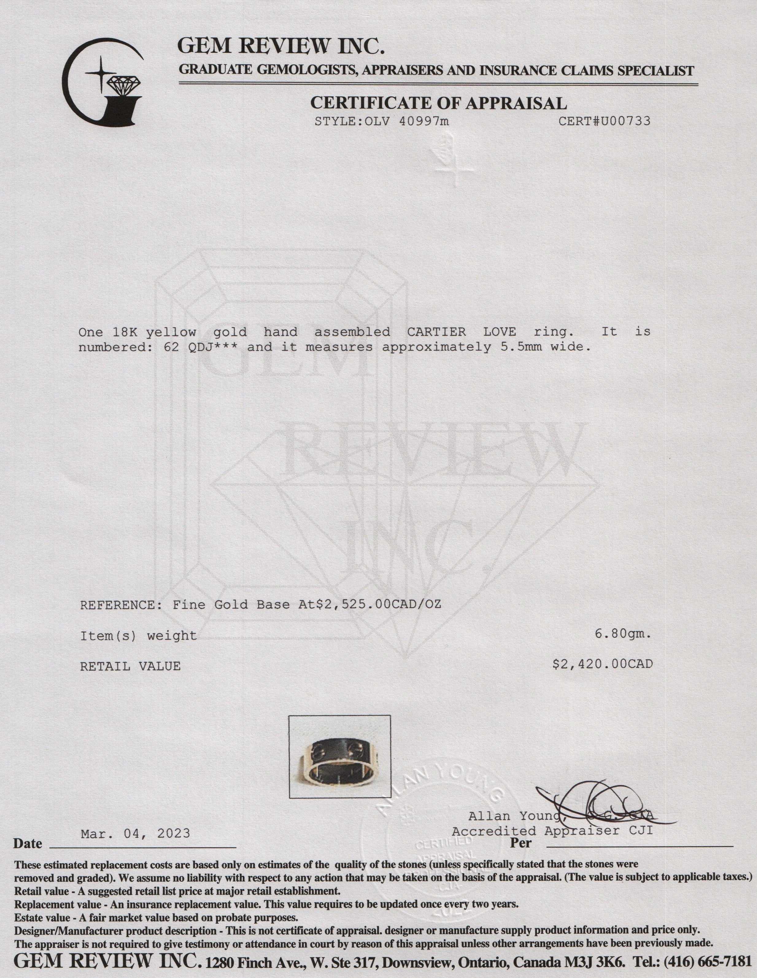 - Cartier Ring Size 62, U.S. Ring Size 10