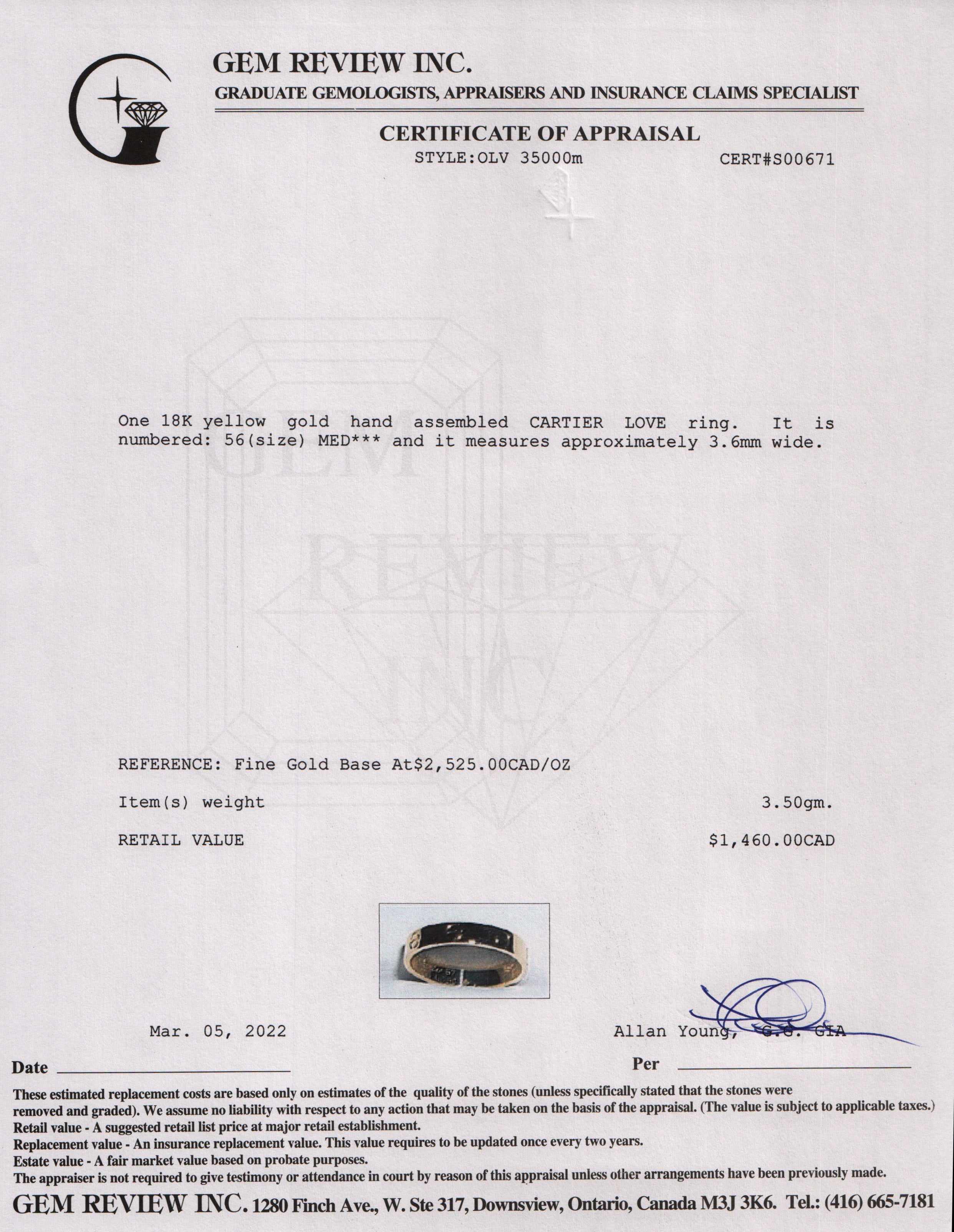 18k Yellow Gold Love Wedding Band Ring w/ Box & Certificate