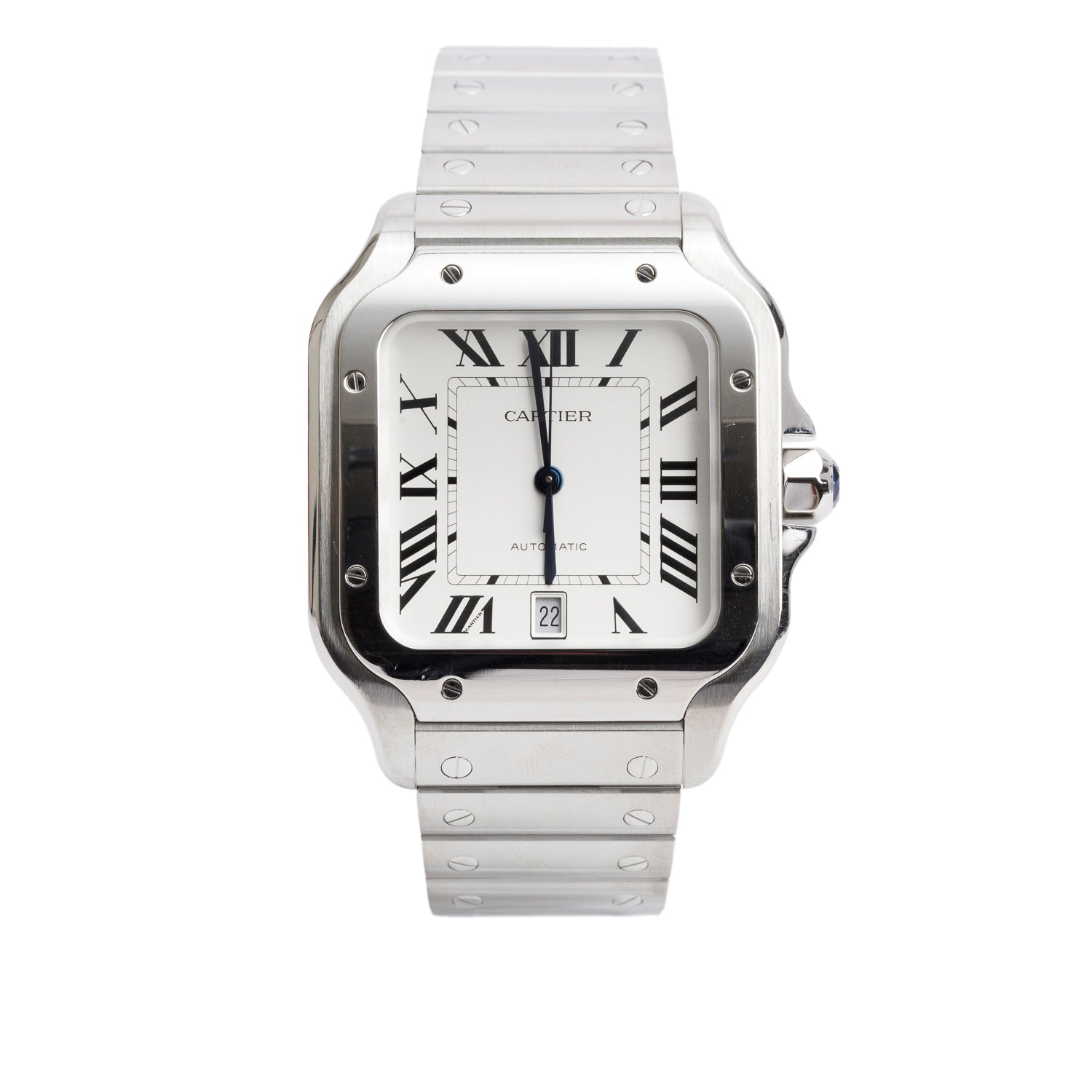 2022 Stainless Steel Santos de Automatic Watch, Large Model Silver Dial 4072 w/ Box, Papers & Extra Strap